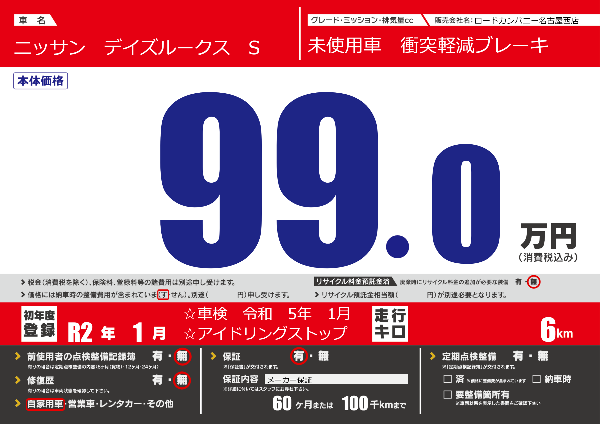 | 車名 | ニッサン デイズルークス S | グレード ミッション 排気量 |