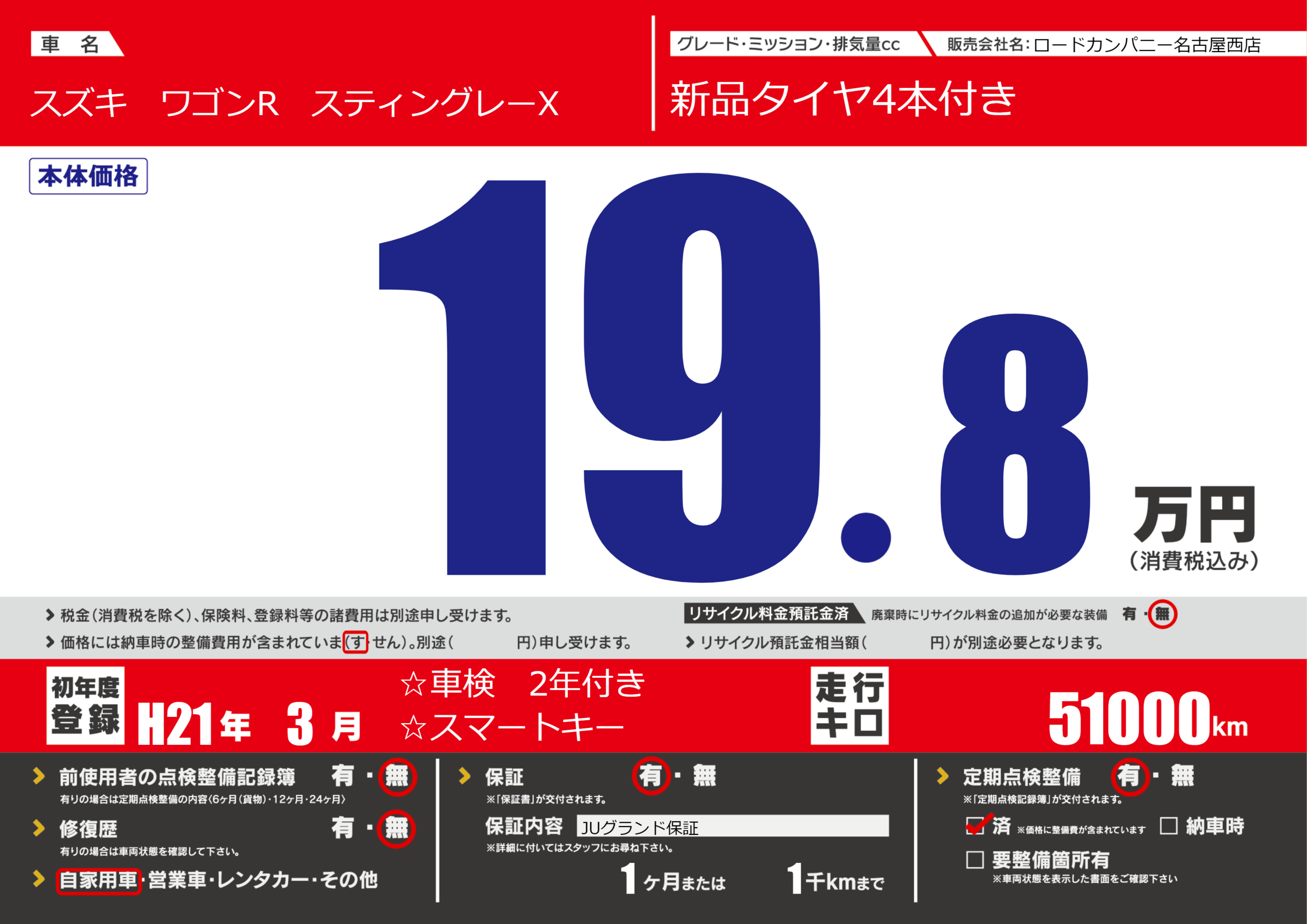 | 定期点検整備 | 定期点検整備あり 定期点検整備済み | ||