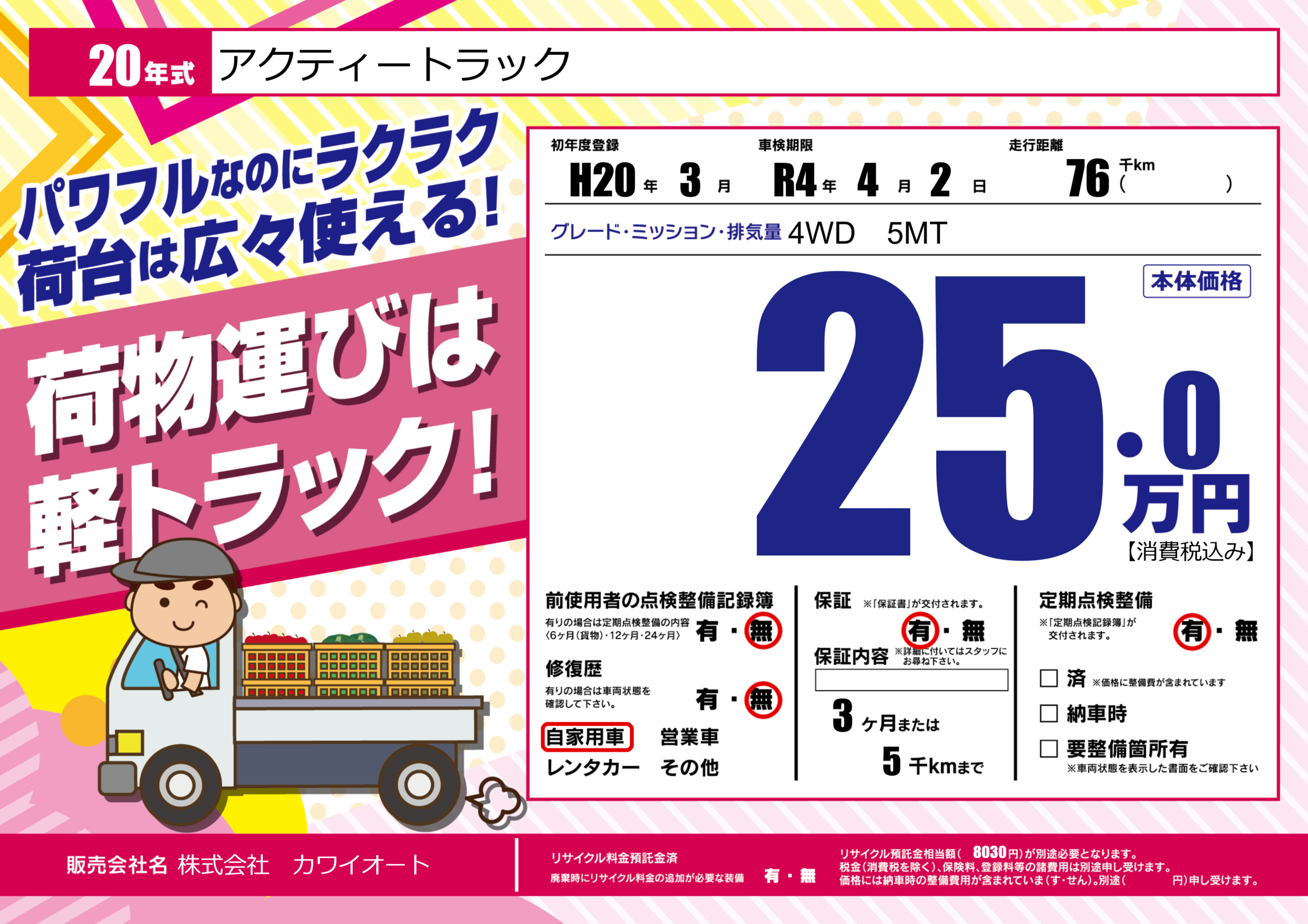 保証付き 保証内容(---) 3ヶ月または(5)千kmまで |