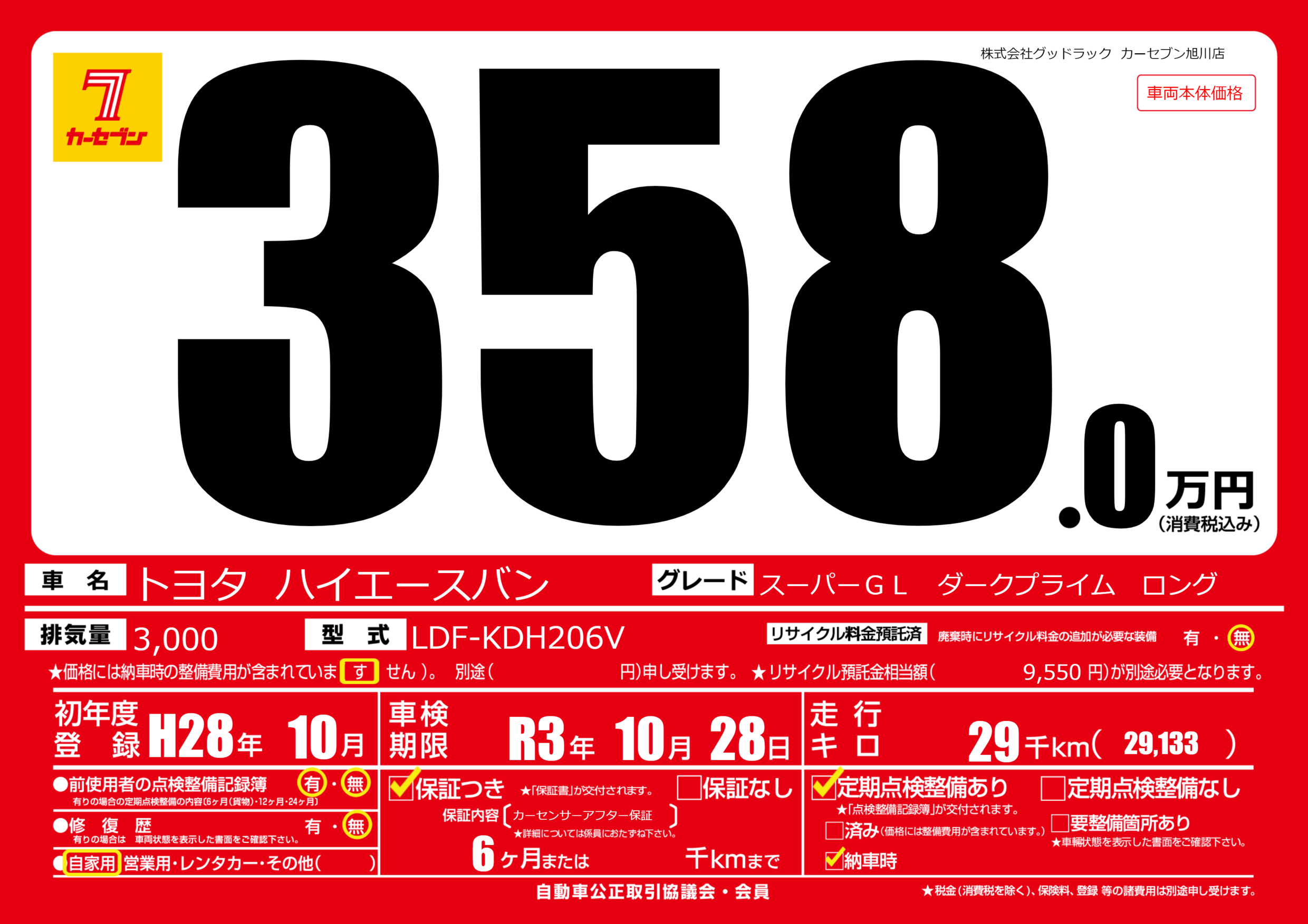 | 走行キロ | 2.9万km | 初年度登録 | H28年10月 |