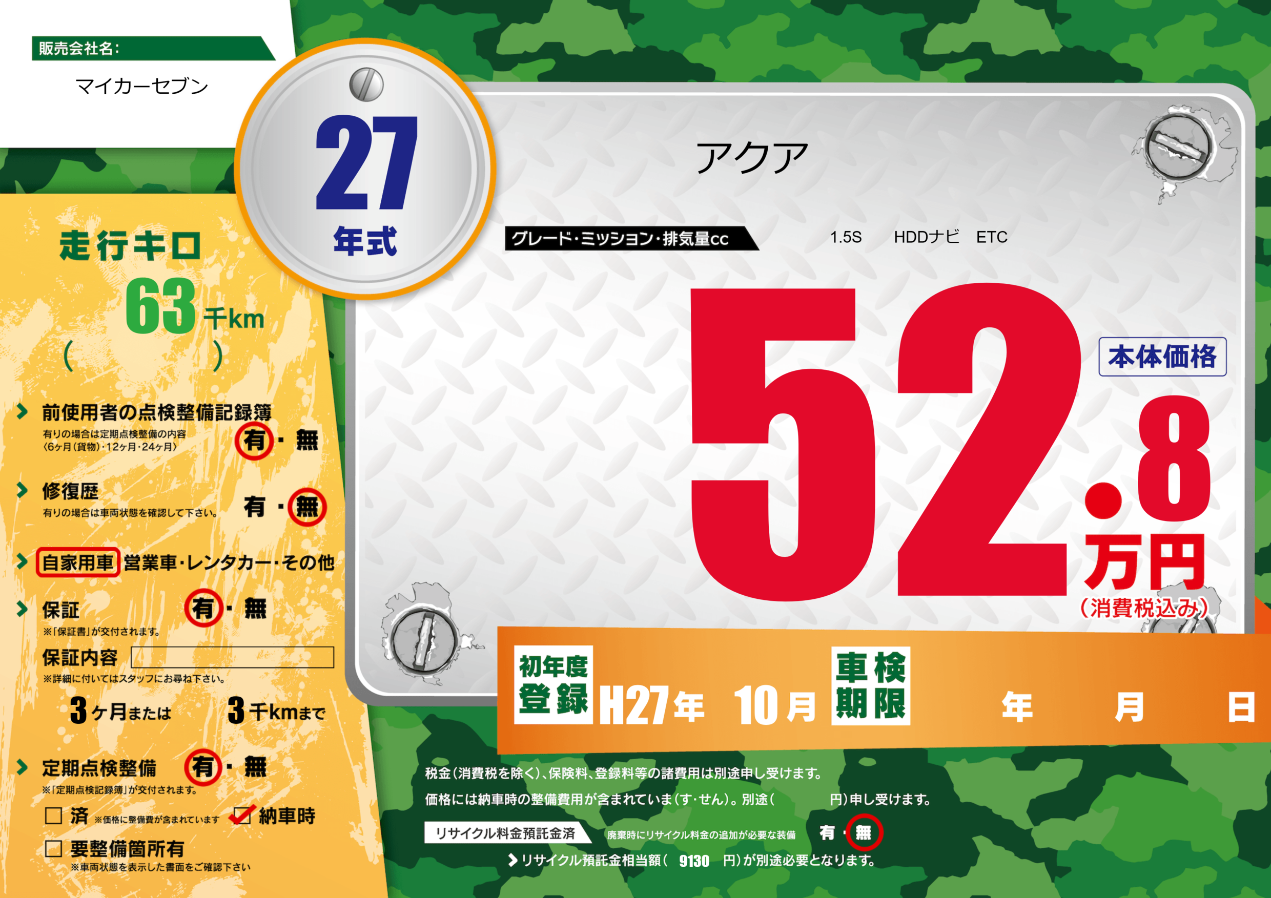 | 定期点検整備 | 定期点検整備あり 納車時あり | ||