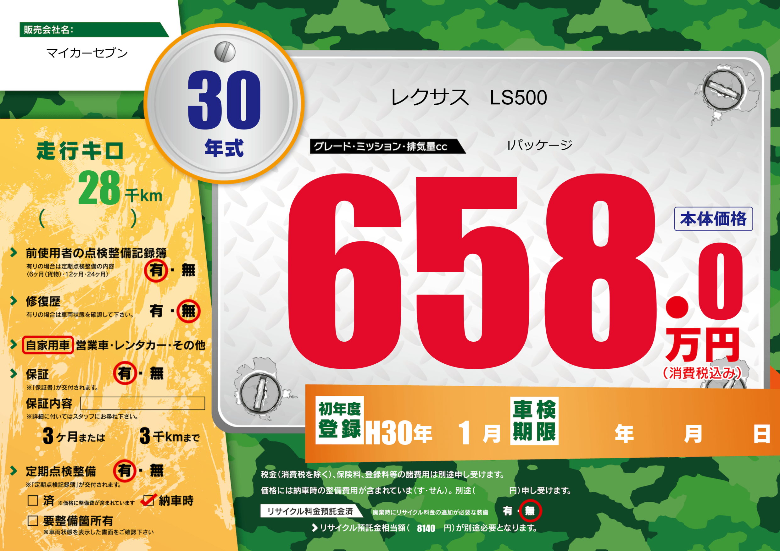| 車検制限 | - 年 - 月 - 日 | ||