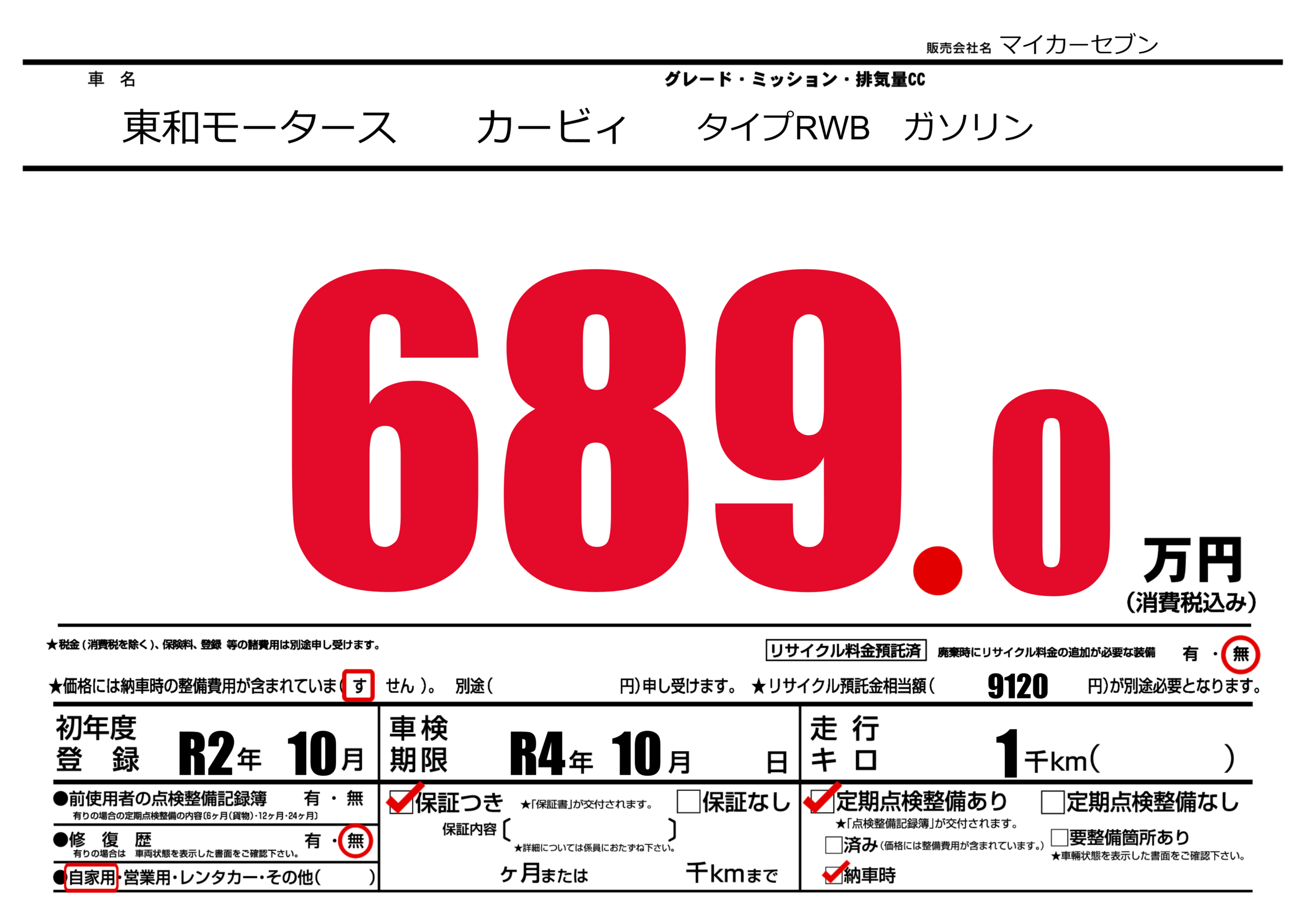 | 車検制限 | R4年 10月 - 日 | ||