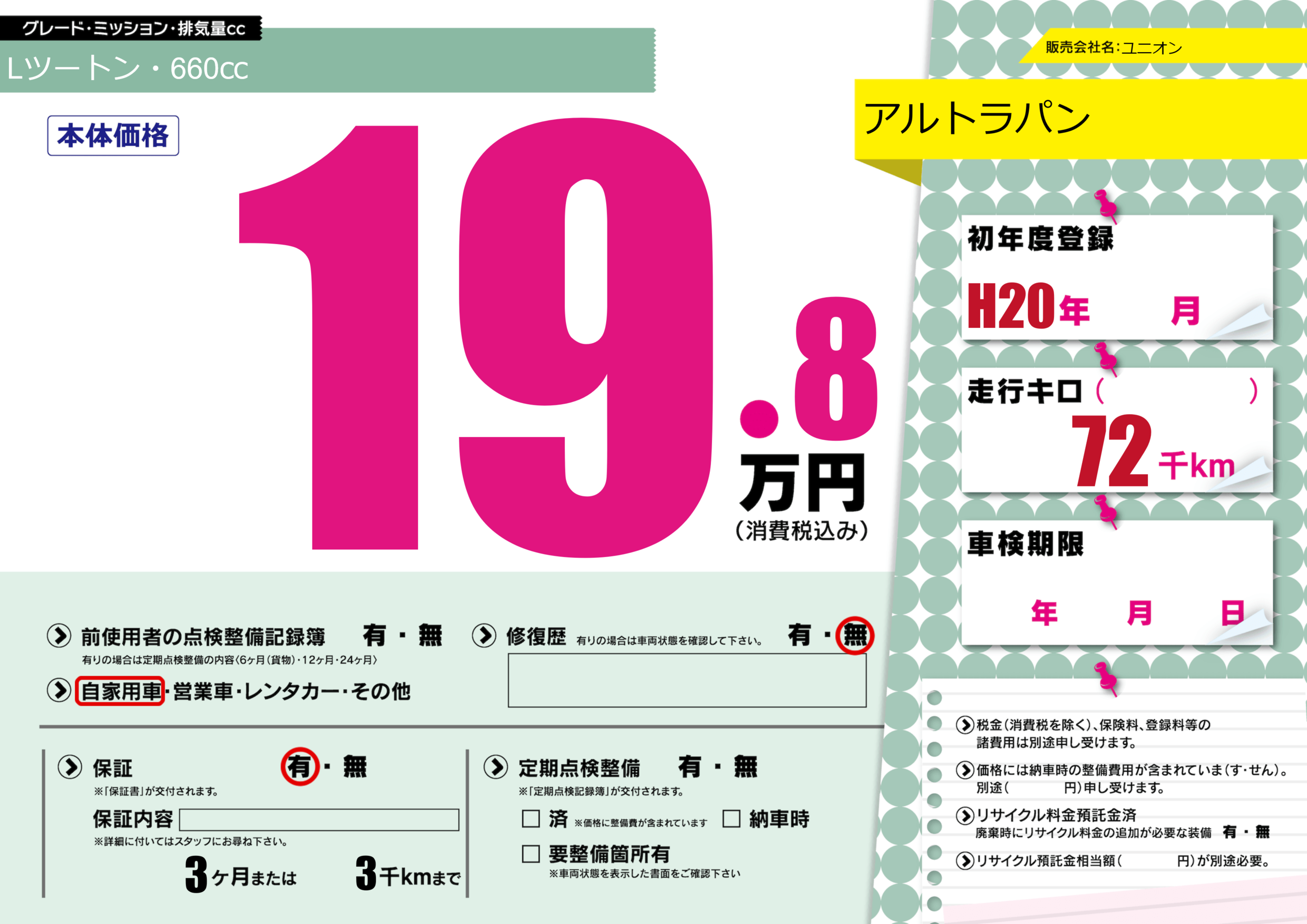 保証付き 保証内容(---) 3ヶ月または(3)千kmまで |