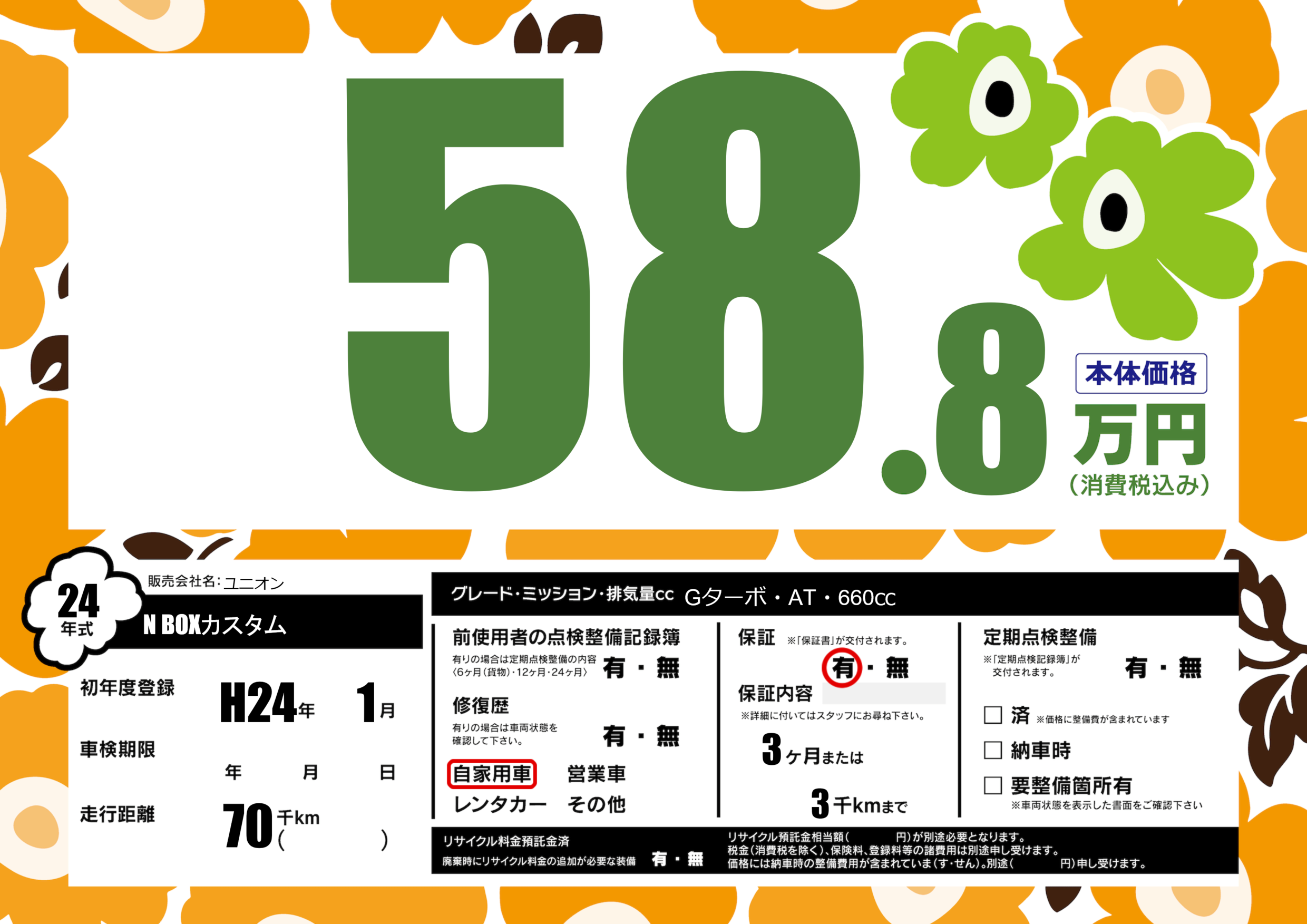 | 車名 | N BOXカスタム | グレード ミッション 排気量 |