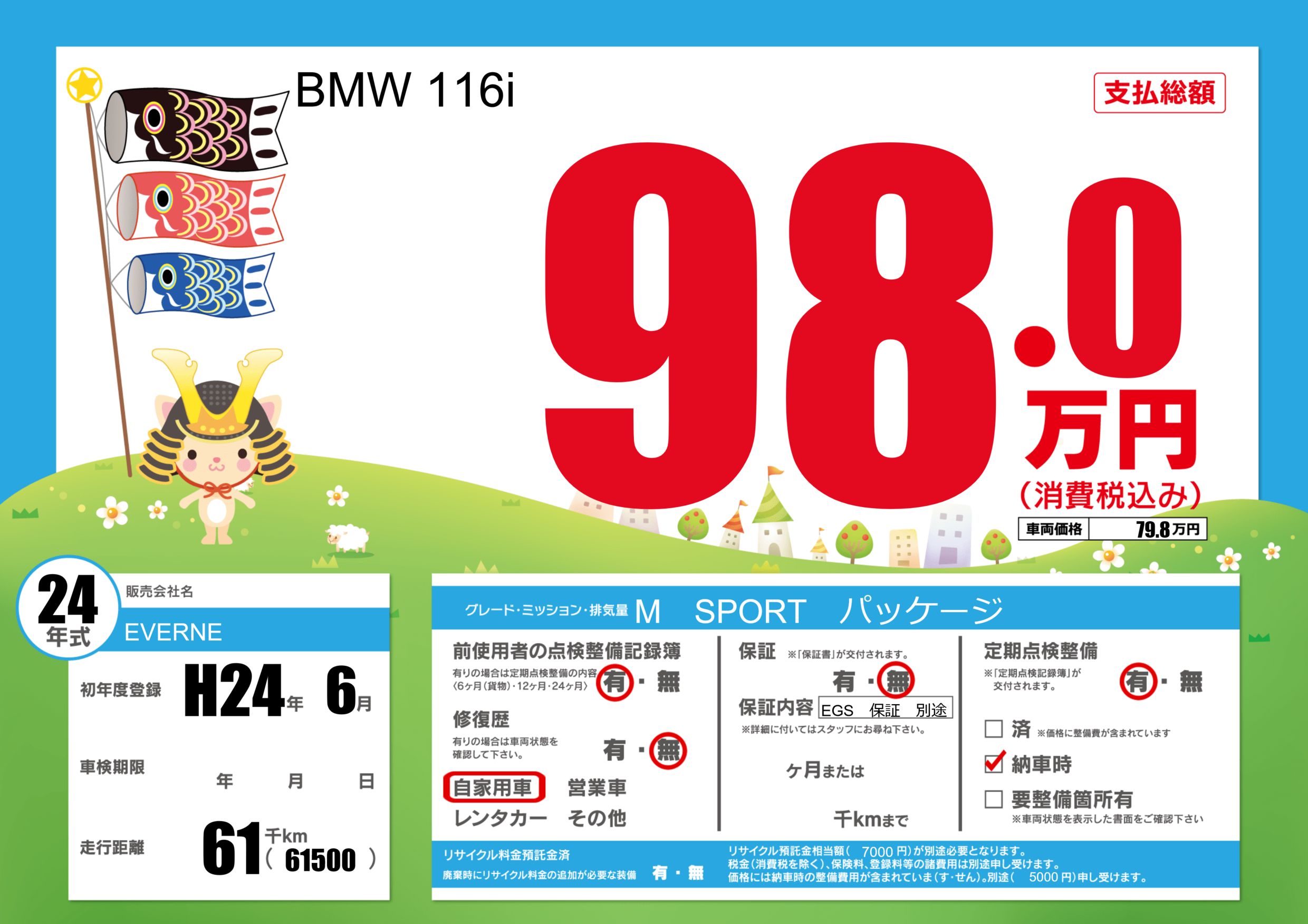 | 車名 | BMW 116i | グレード ミッション 排気量 |