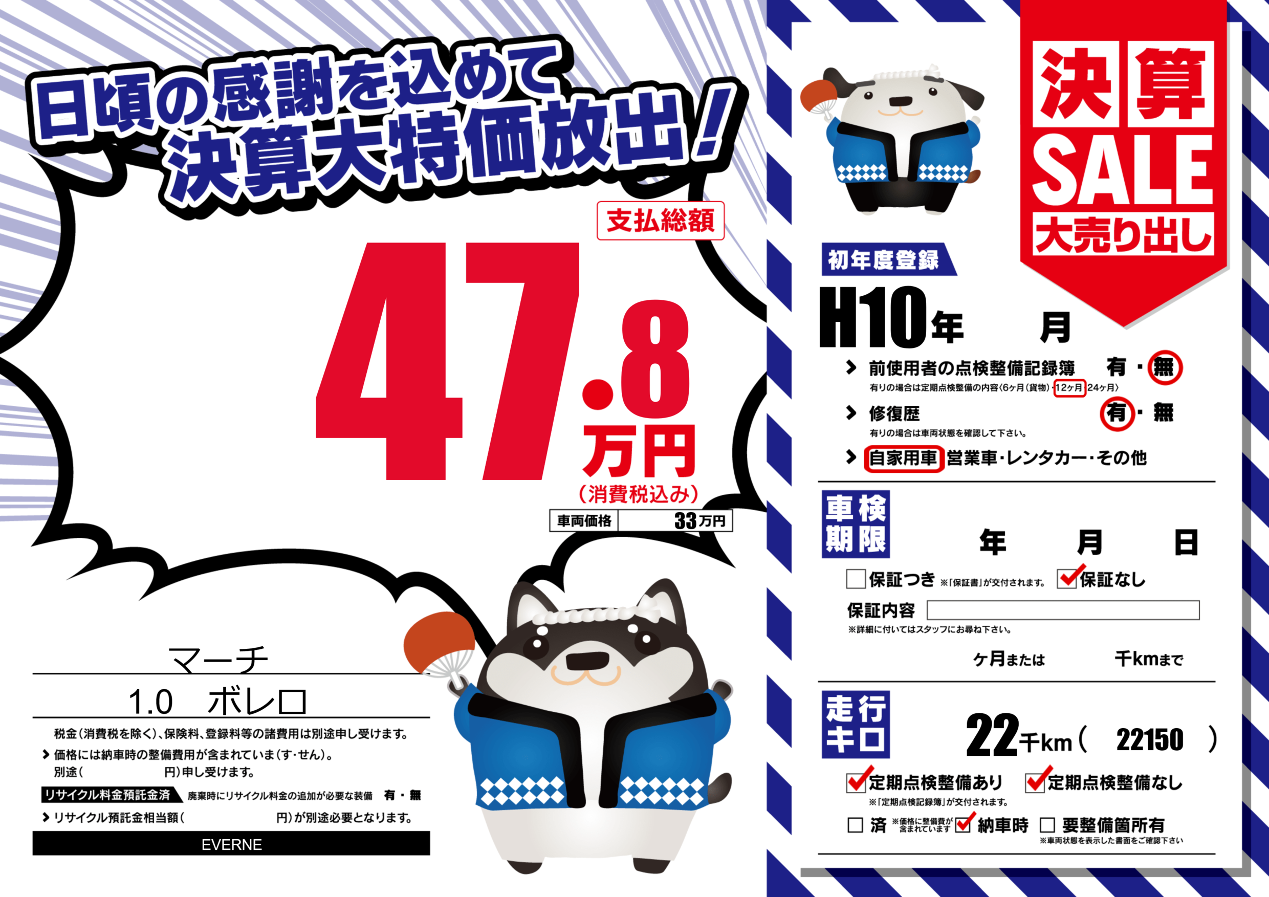 | 車名 | マーチ | グレード ミッション 排気量 |