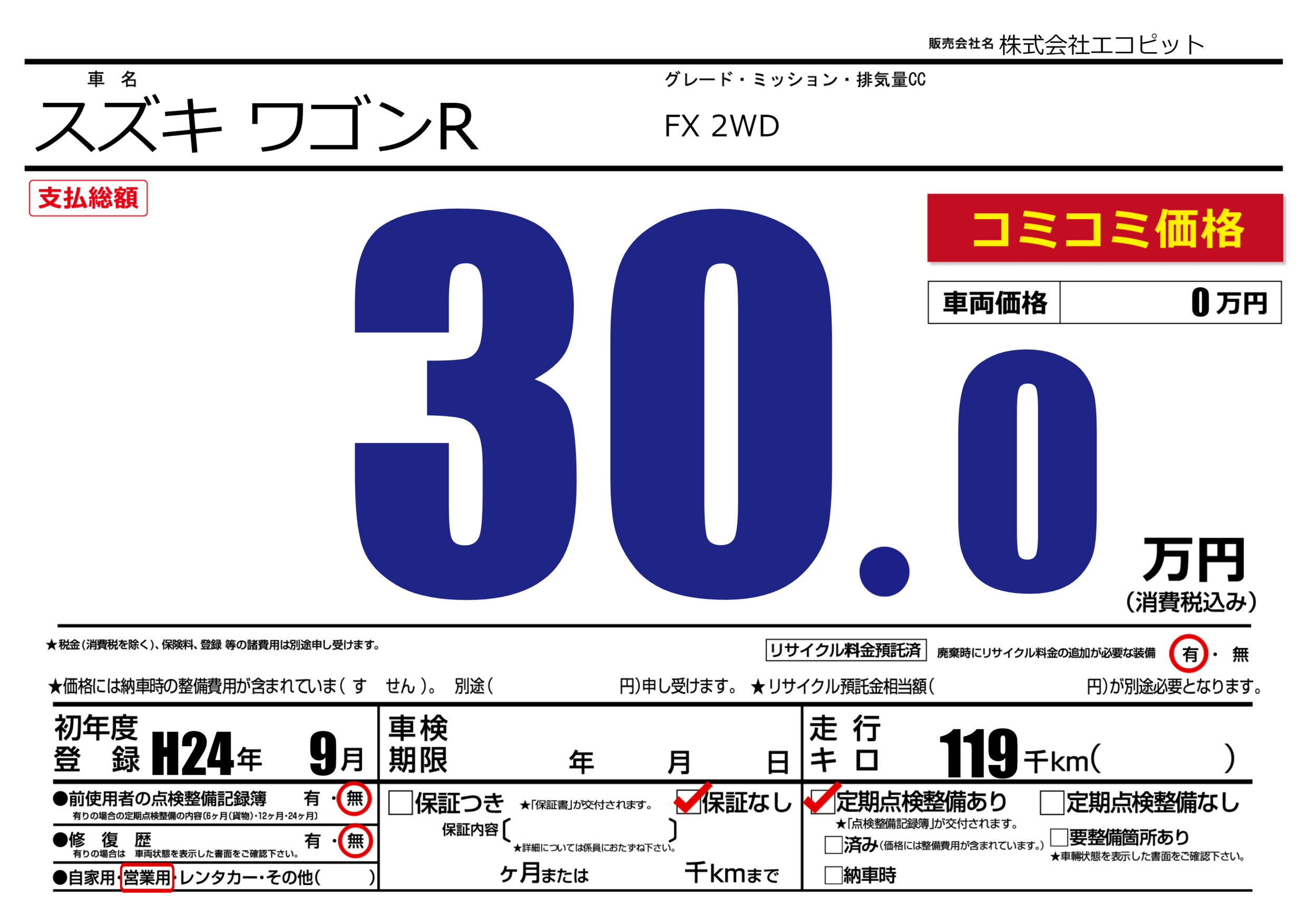 | 定期点検整備 | 定期点検整備あり | ||