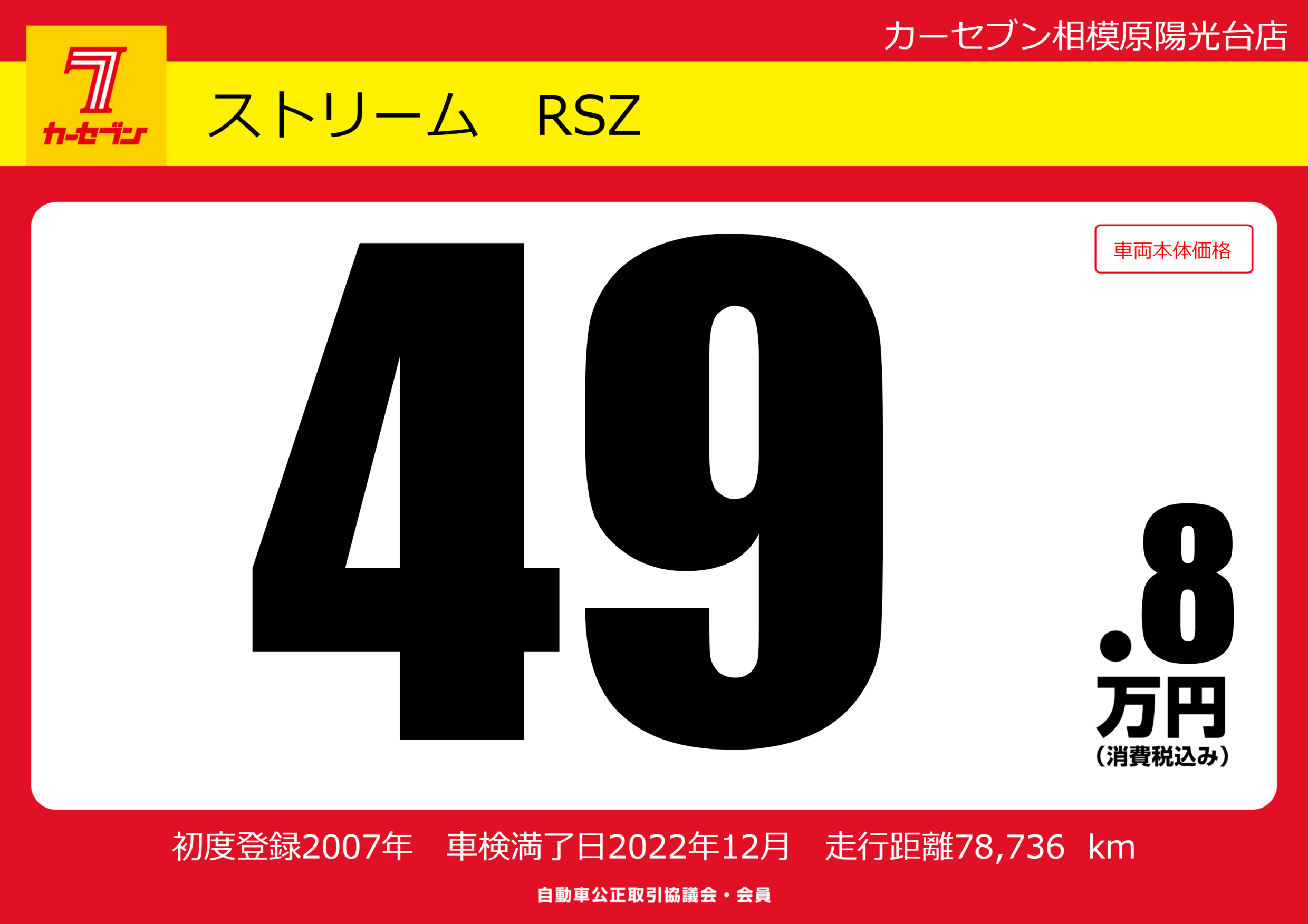 | 車名 | ストリーム RSZ | グレード ミッション 排気量 |