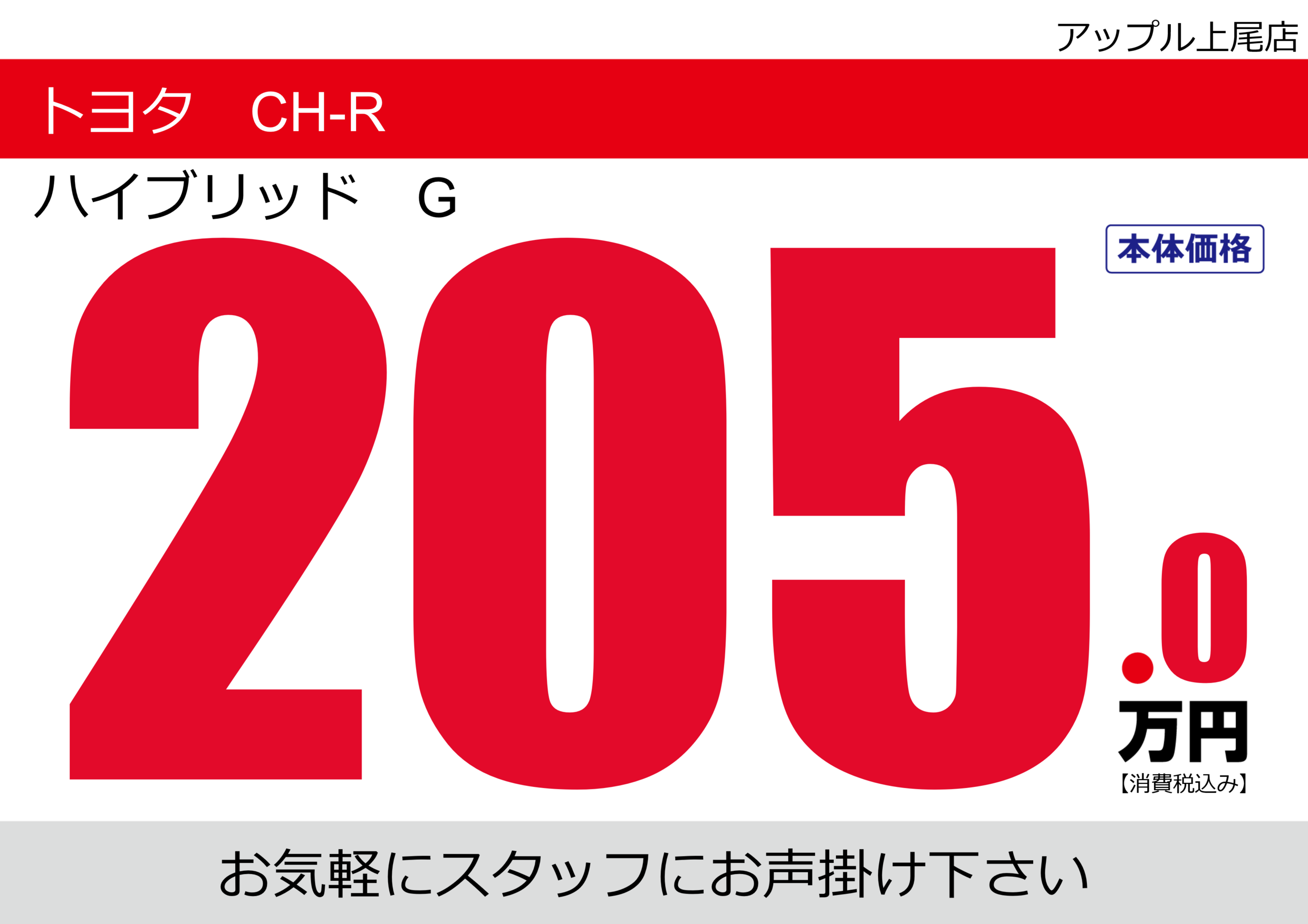 | 車名 | トヨタ CH-R | グレード ミッション 排気量 |