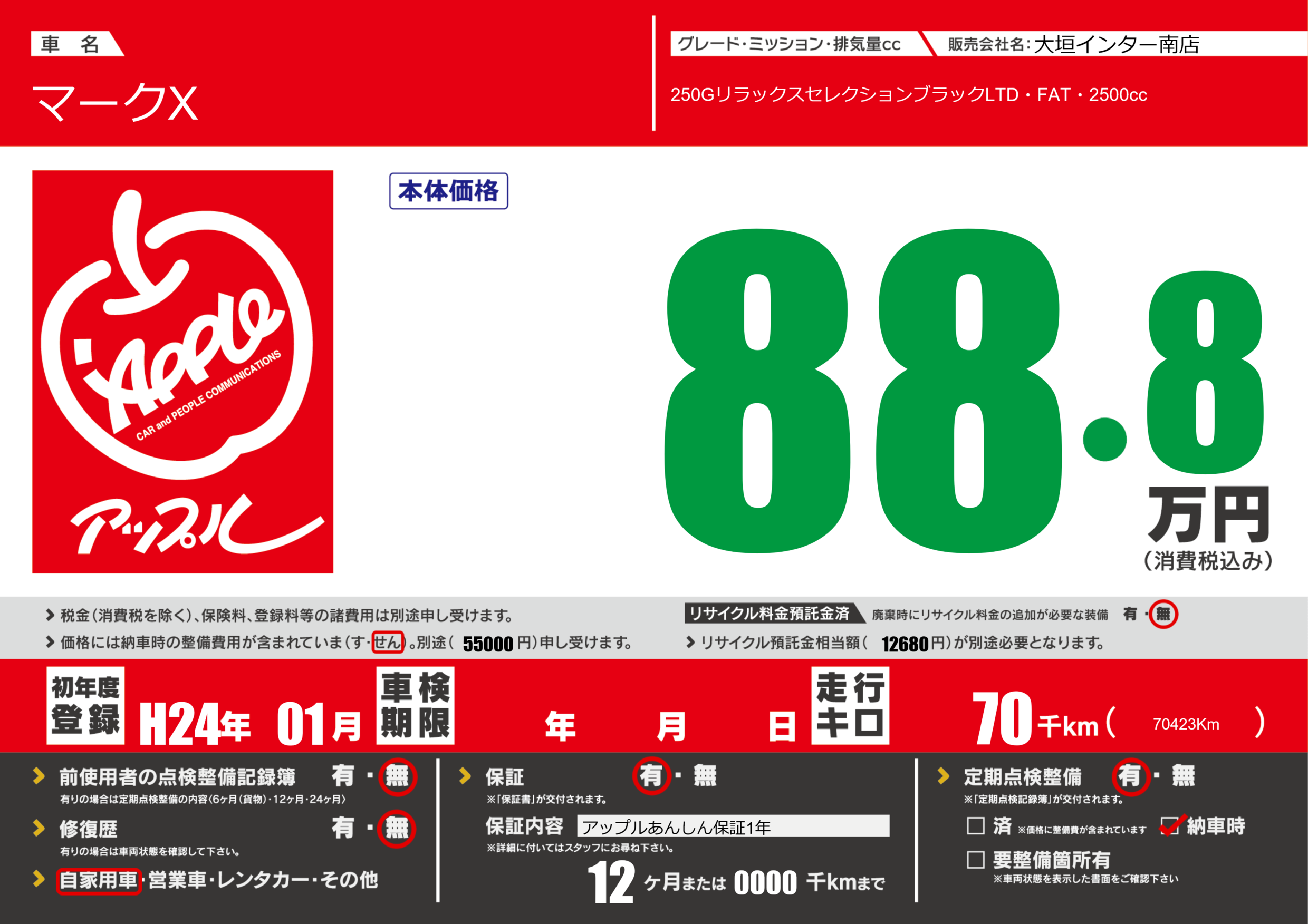 保証付き 保証内容(アップルあんしん保証1年) 12ヶ月または(0000)千kmまで |