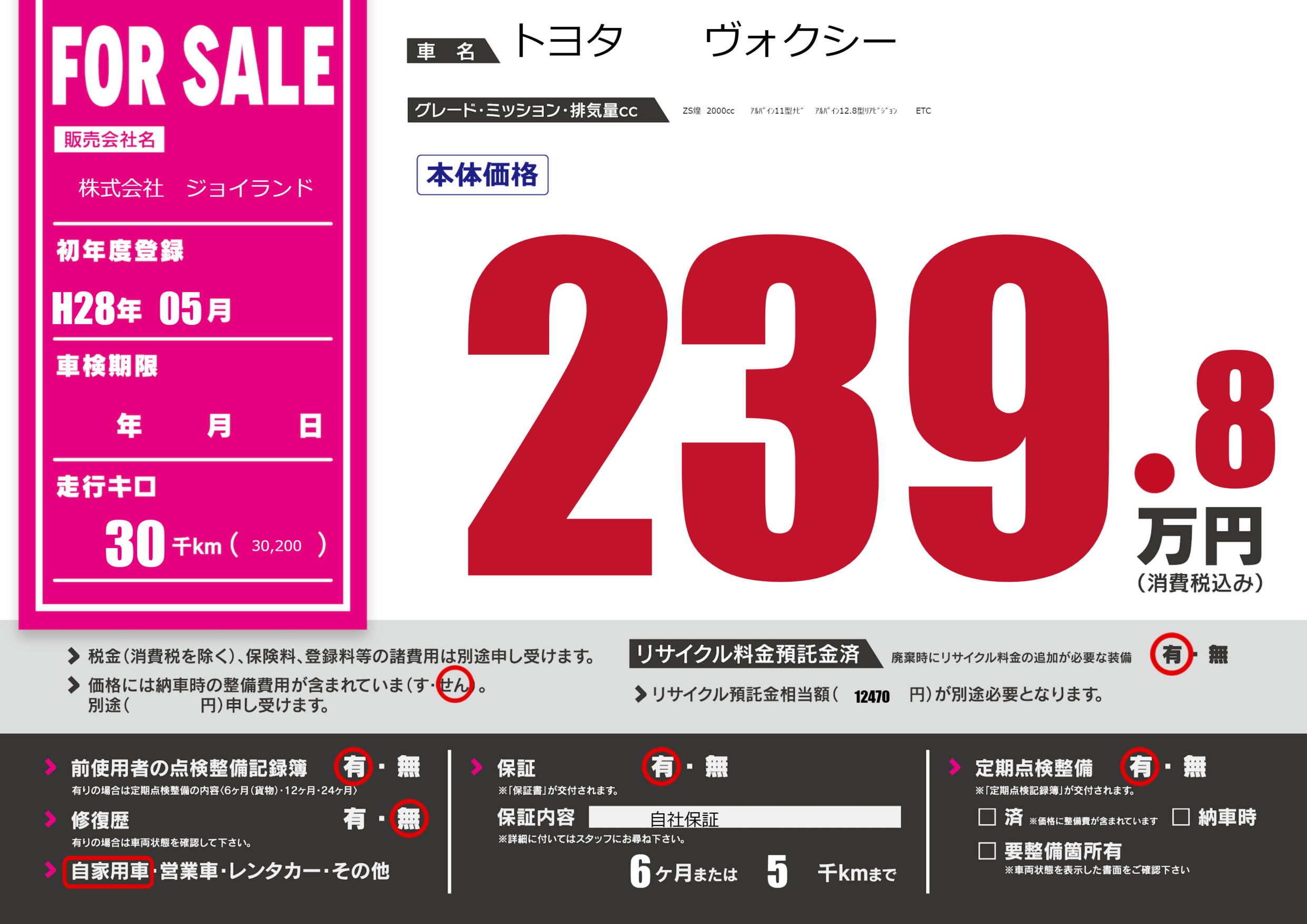 | 走行キロ | 3万km | ||