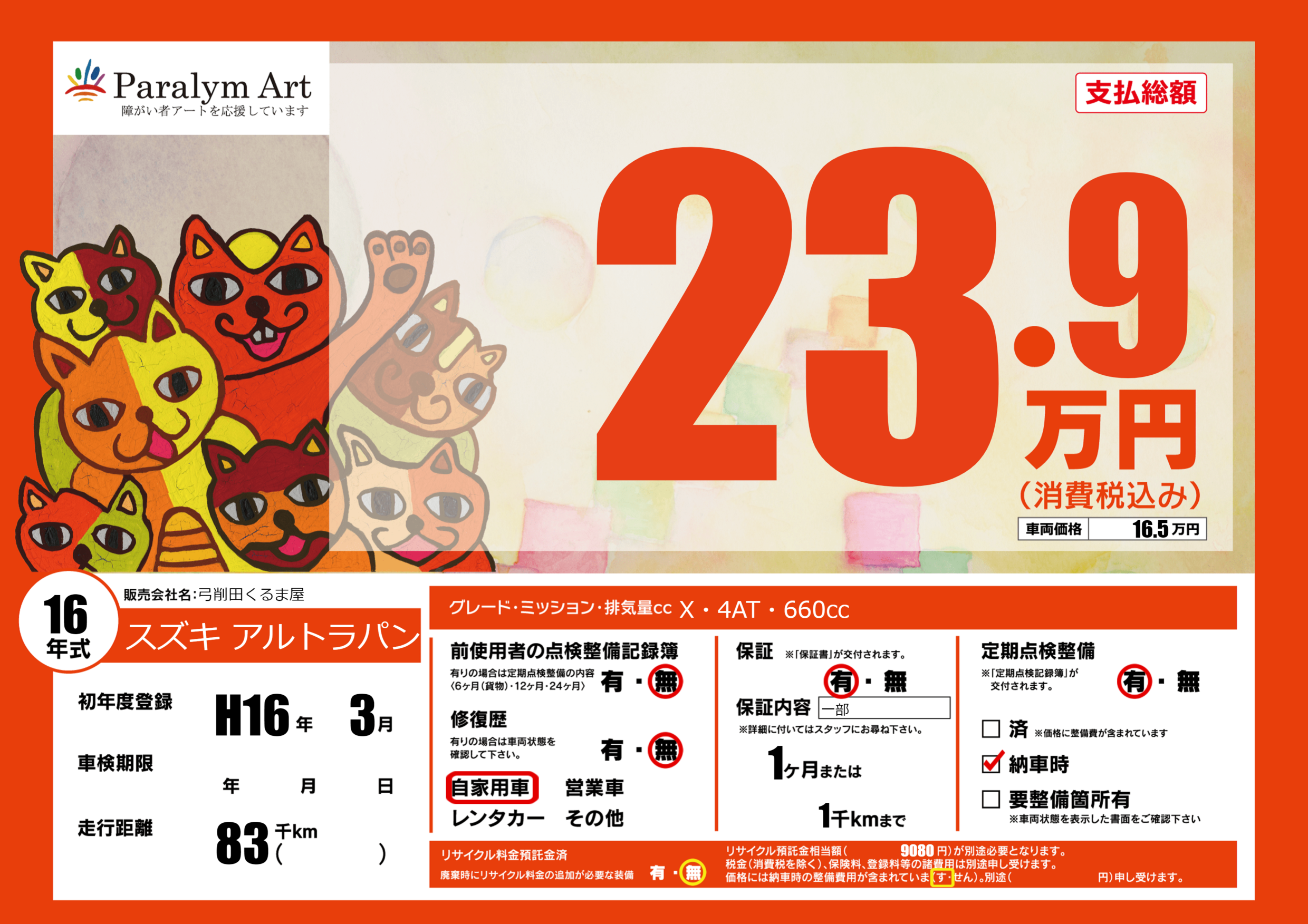 | 走行キロ | 8.3万km | 初年度登録 | H16年3月 |