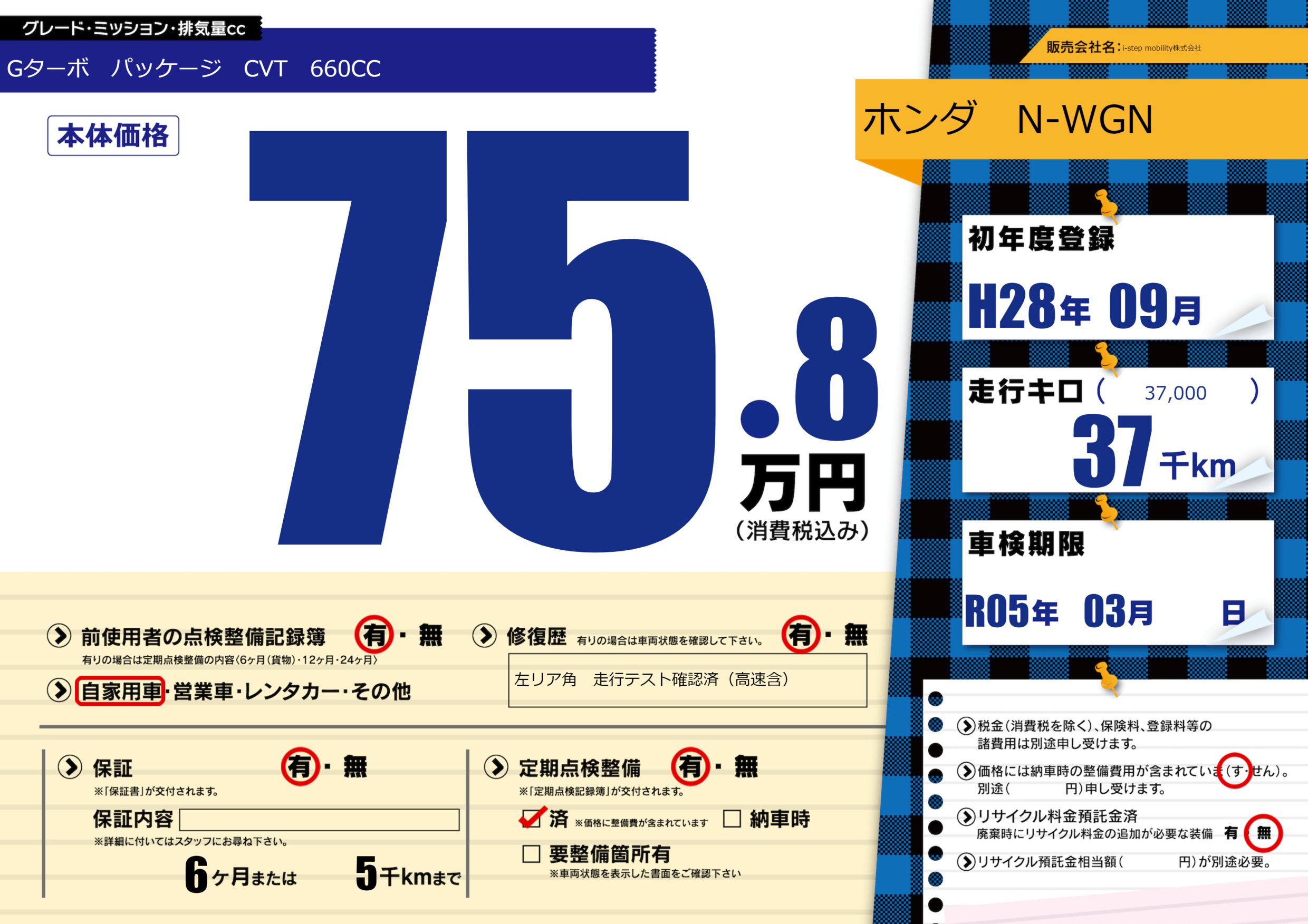 | 定期点検整備 | 定期点検整備あり 定期点検整備済み | ||