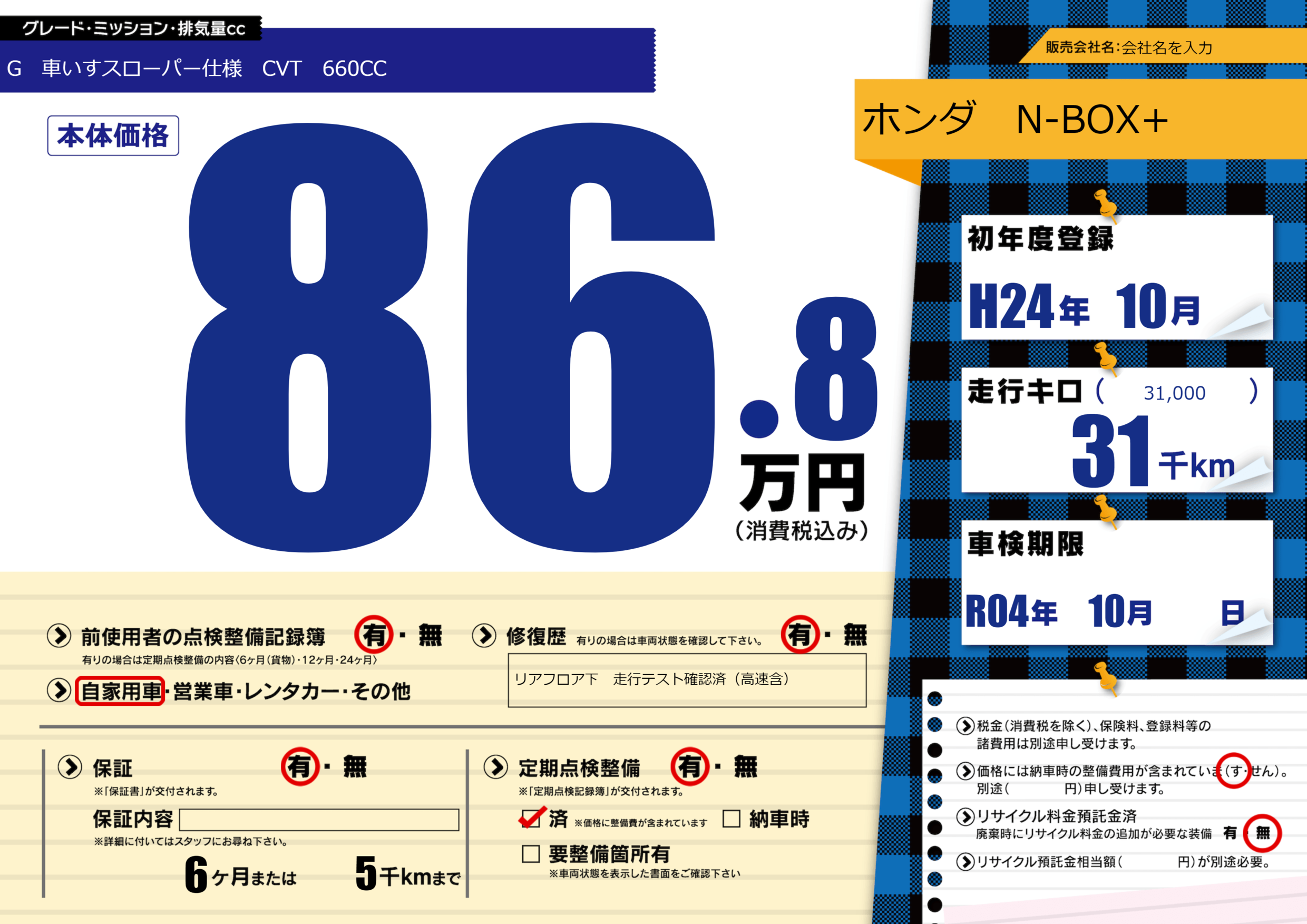 | 定期点検整備 | 定期点検整備あり 定期点検整備済み | ||