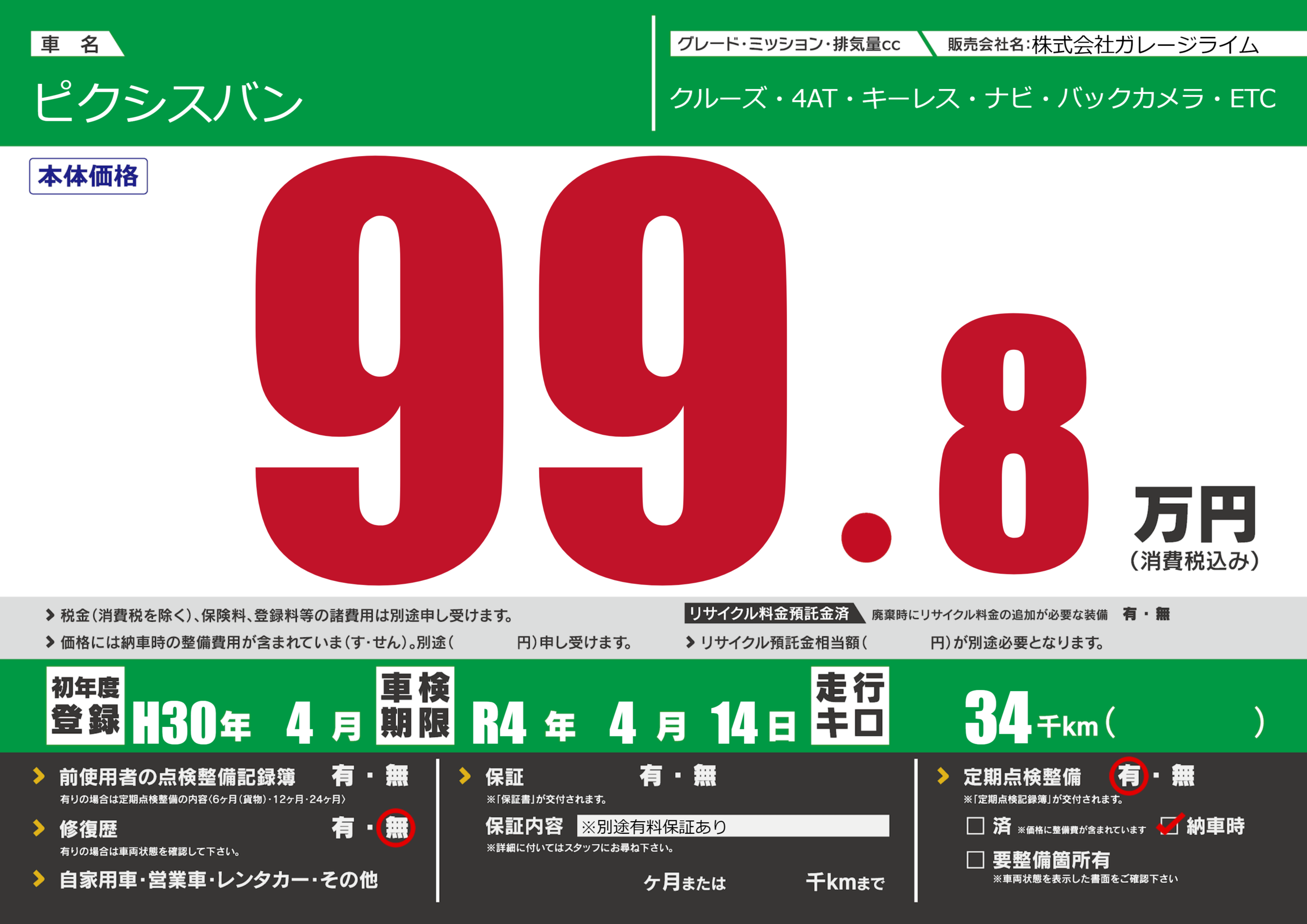 なし | 車検制限 | R4年4月14月 |