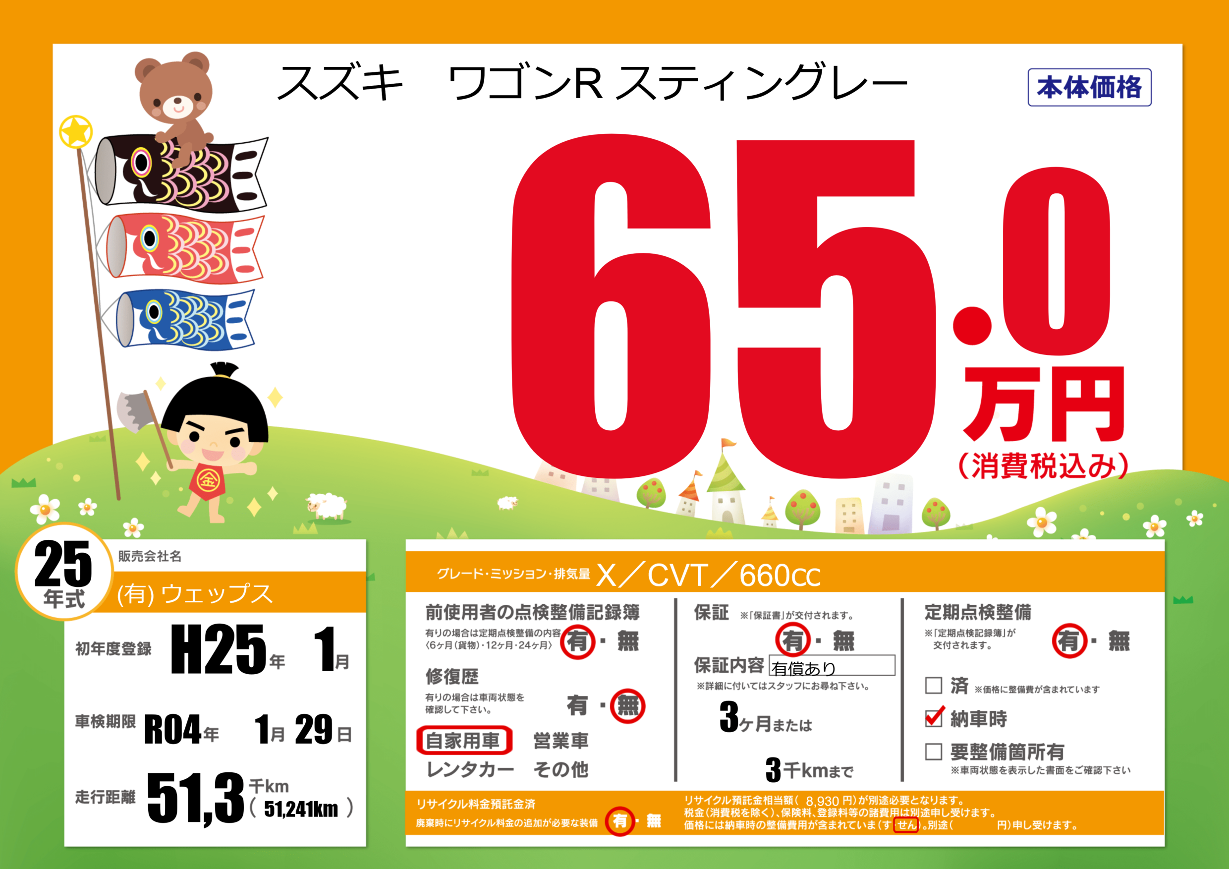 | 走行キロ | 5.1万km | 初年度登録 | H25年1月 |