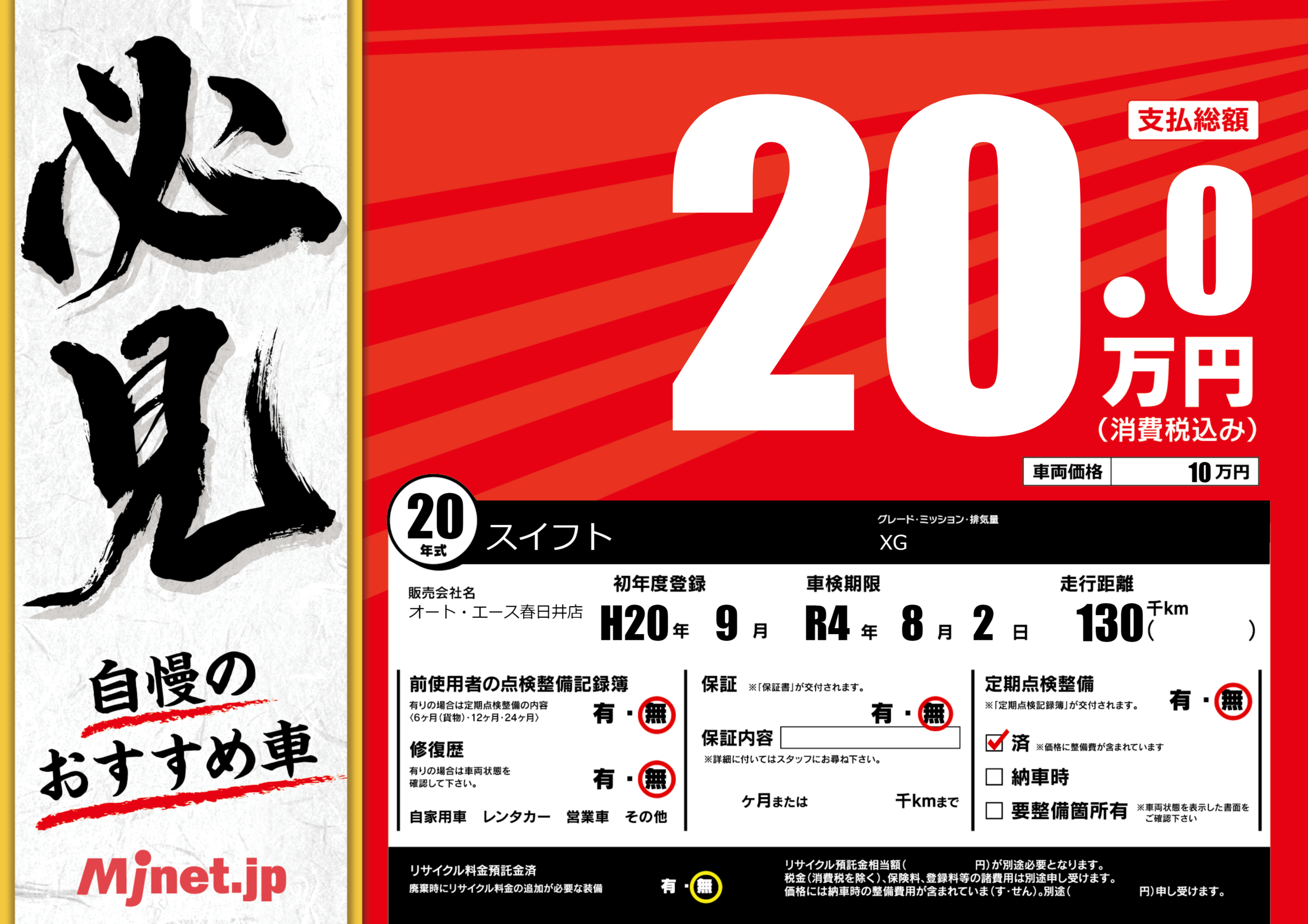 | 定期点検整備 | 定期点検整備なし 定期点検整備済み | ||