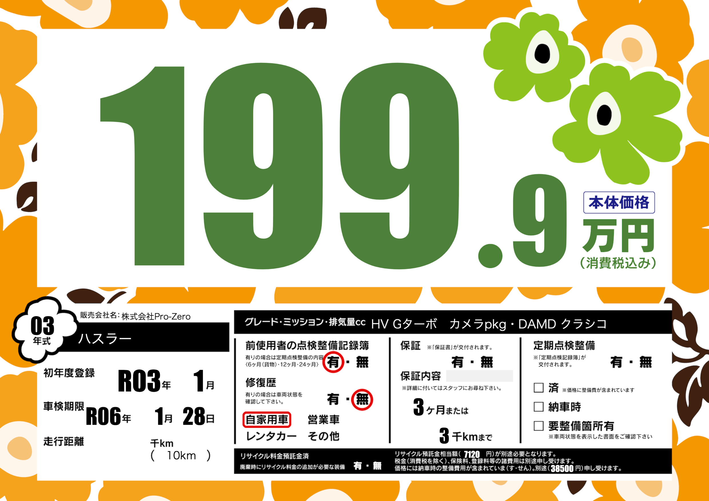 保証なし 保証内容(---) 3ヶ月または(3)千kmまで |
