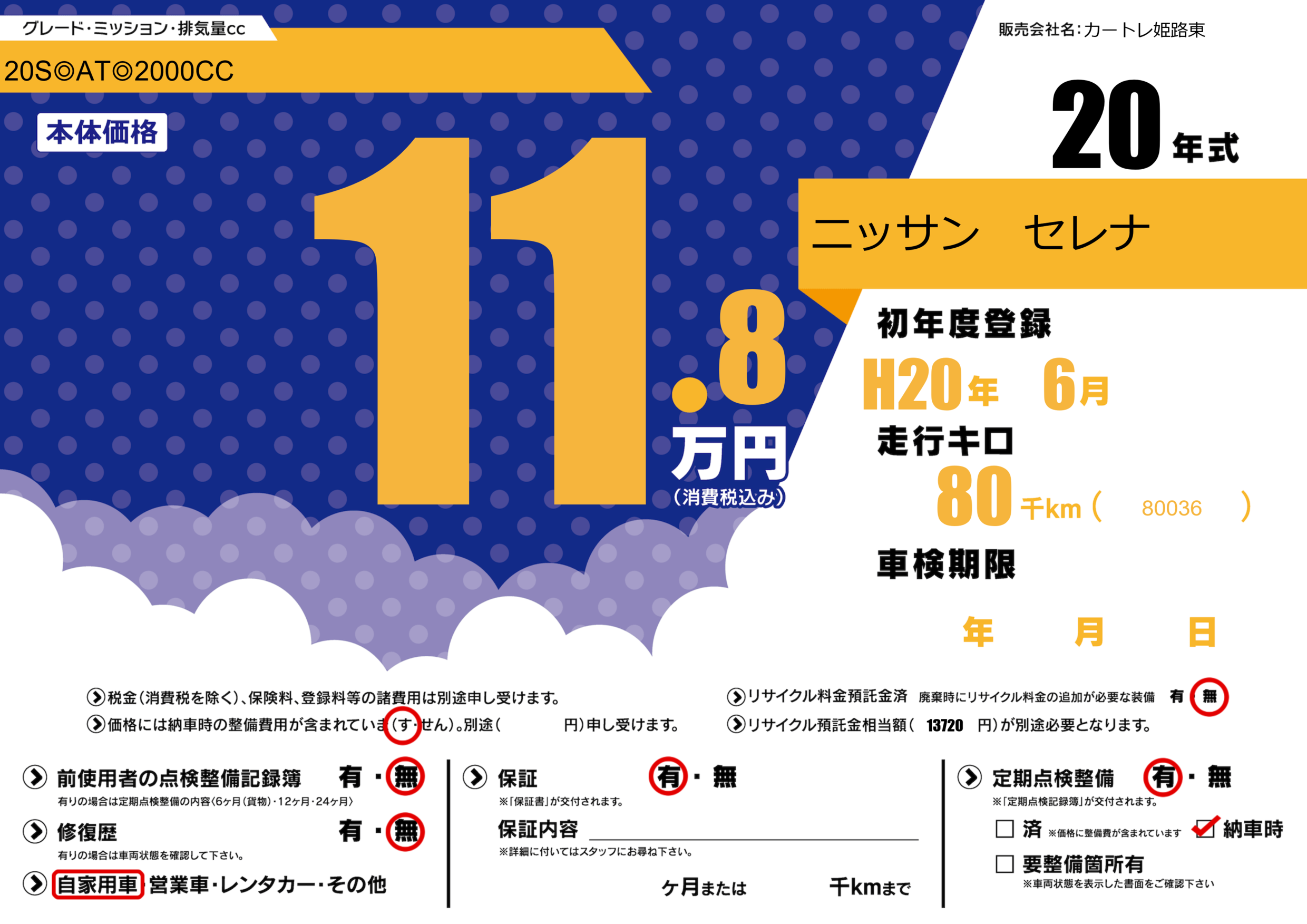 | 定期点検整備 | 定期点検整備あり 納車時あり | ||