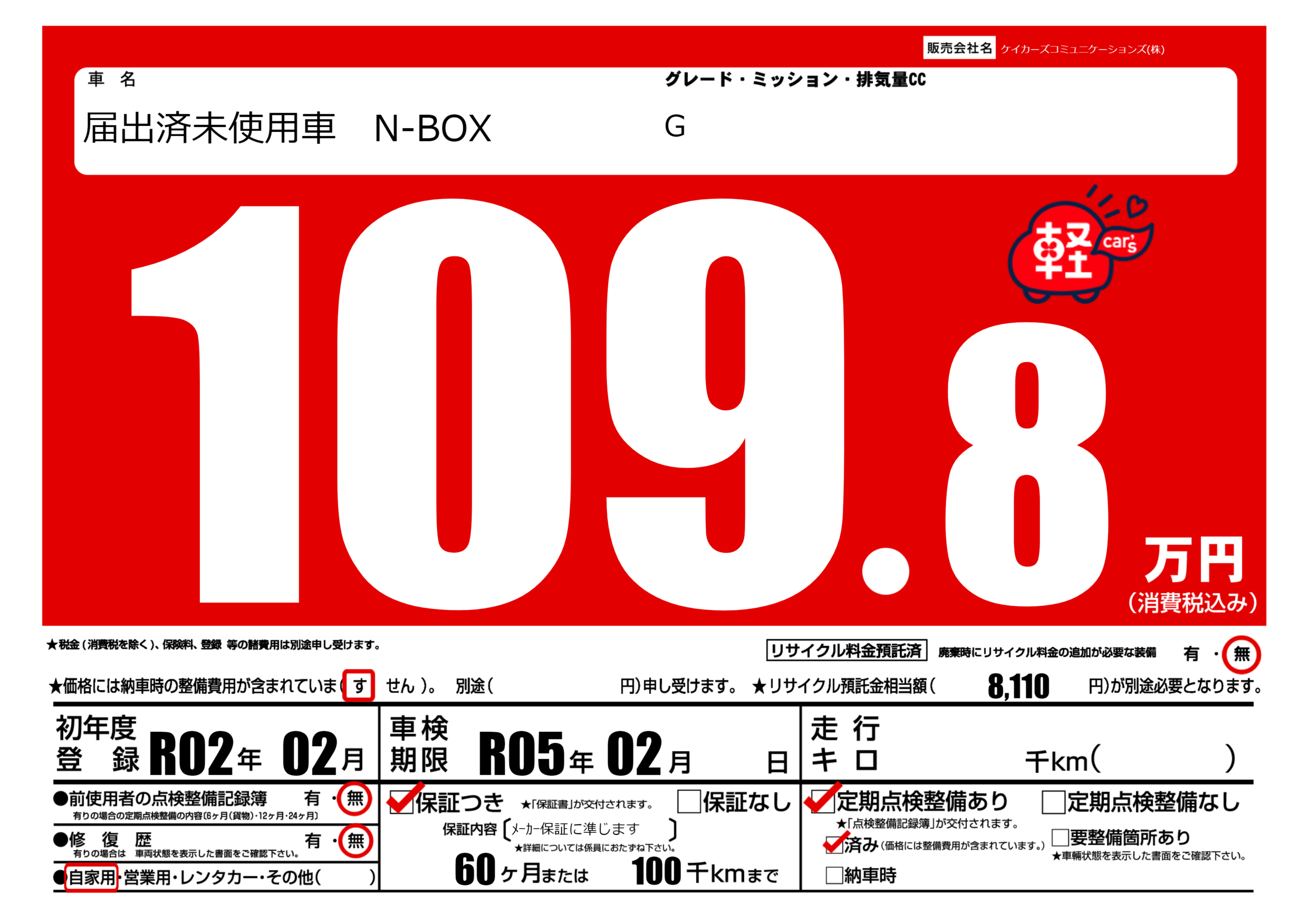| 定期点検整備 | 定期点検整備あり 定期点検整備済み | ||