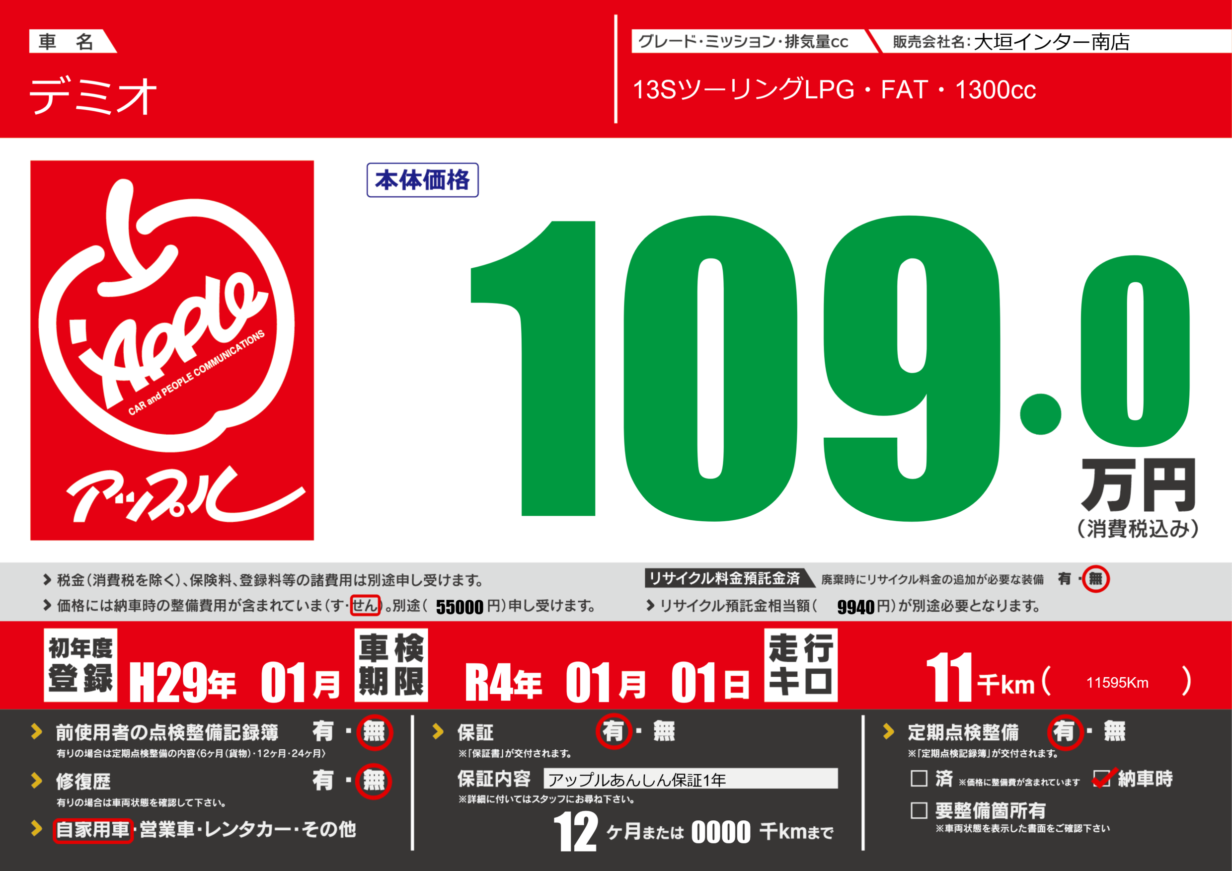 | 車名 | デミオ | グレード ミッション 排気量 |