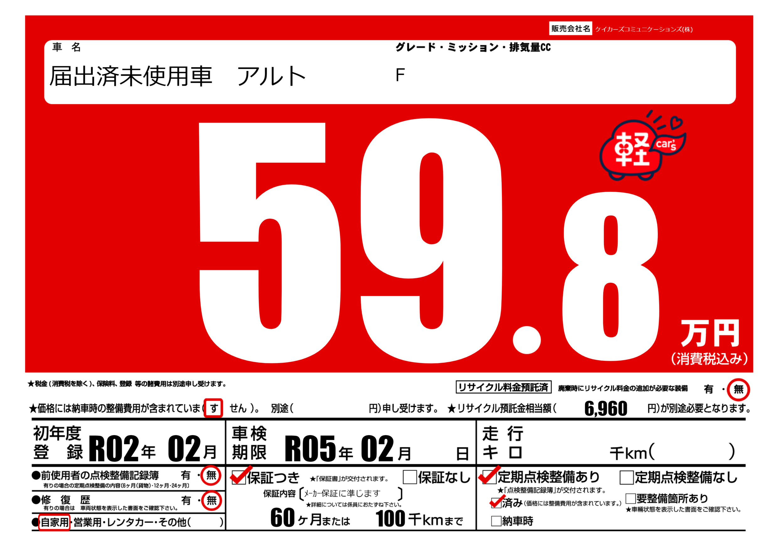 | 定期点検整備 | 定期点検整備あり 定期点検整備済み | ||