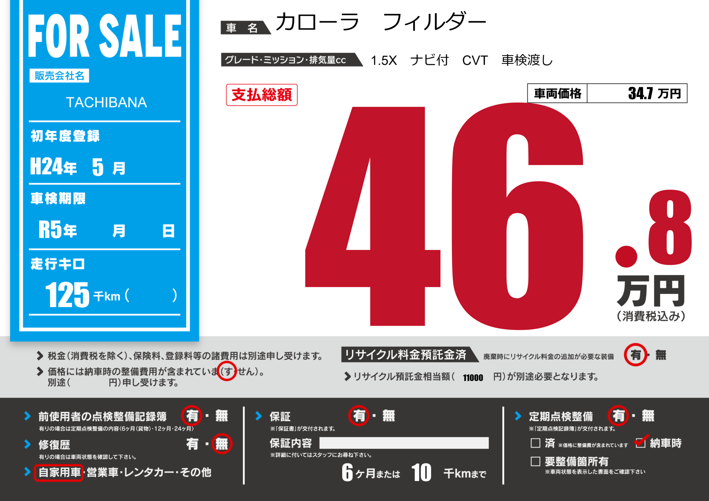 | 定期点検整備 | 定期点検整備あり 納車時あり | ||