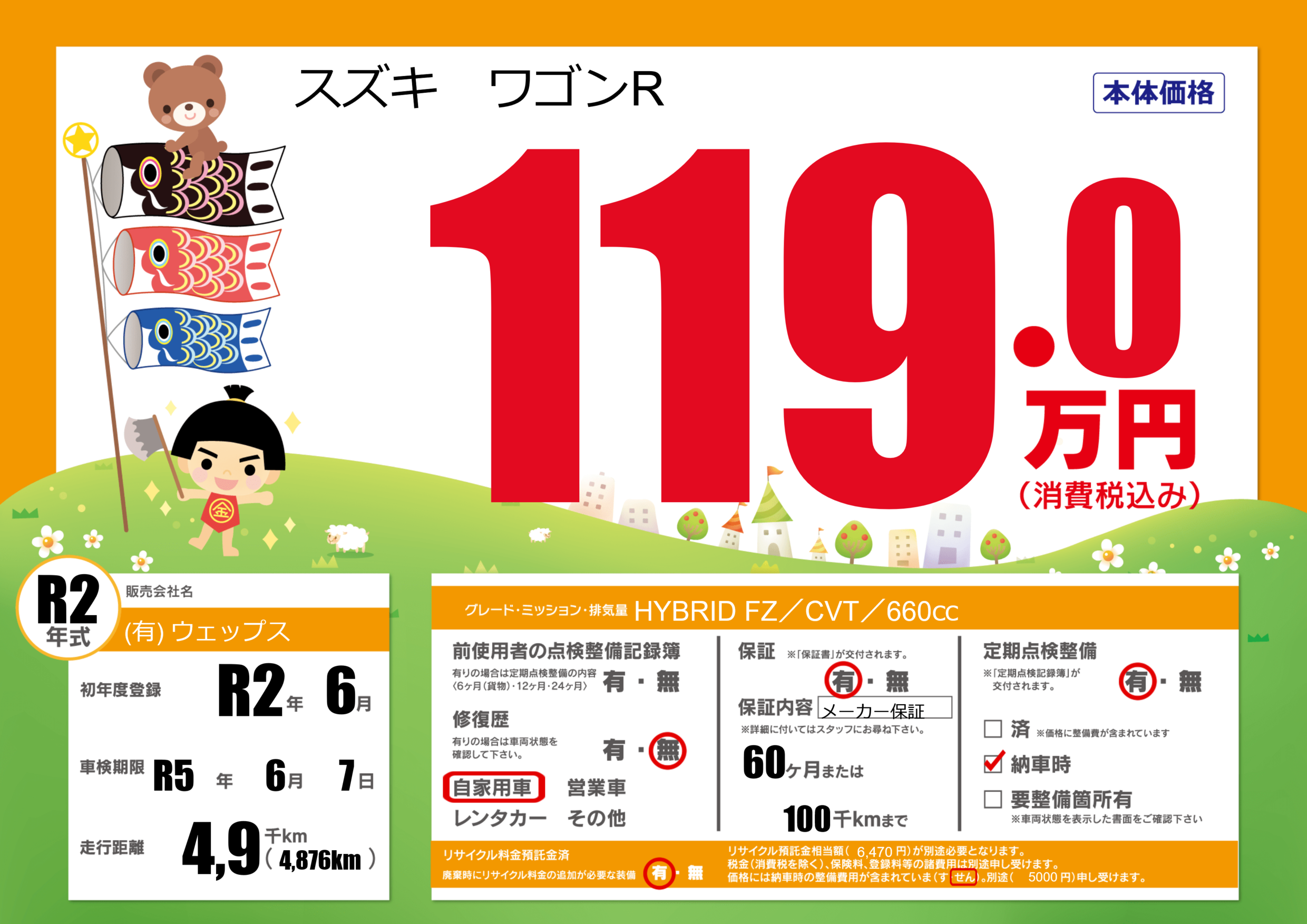 | 車名 | スズキ ワゴンR | グレード ミッション 排気量 |