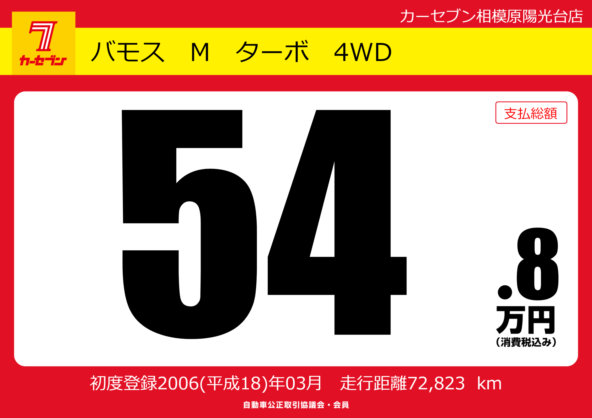 | 車名 | バモス M ターボ 4WD | グレード ミッション 排気量 |