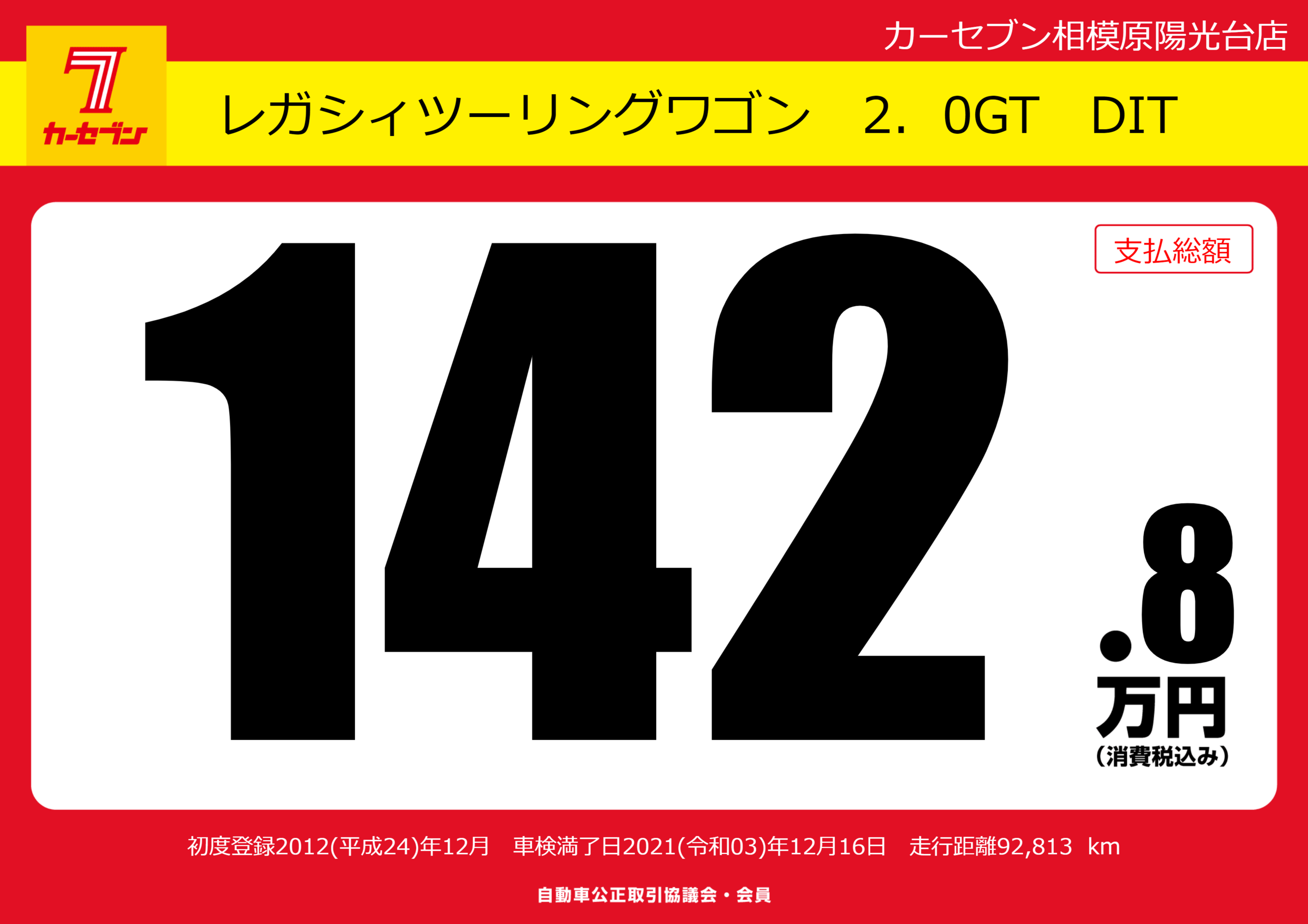 | 車名 | レガシィツーリングワゴン 2.0GT DIT | グレード ミッション 排気量 |