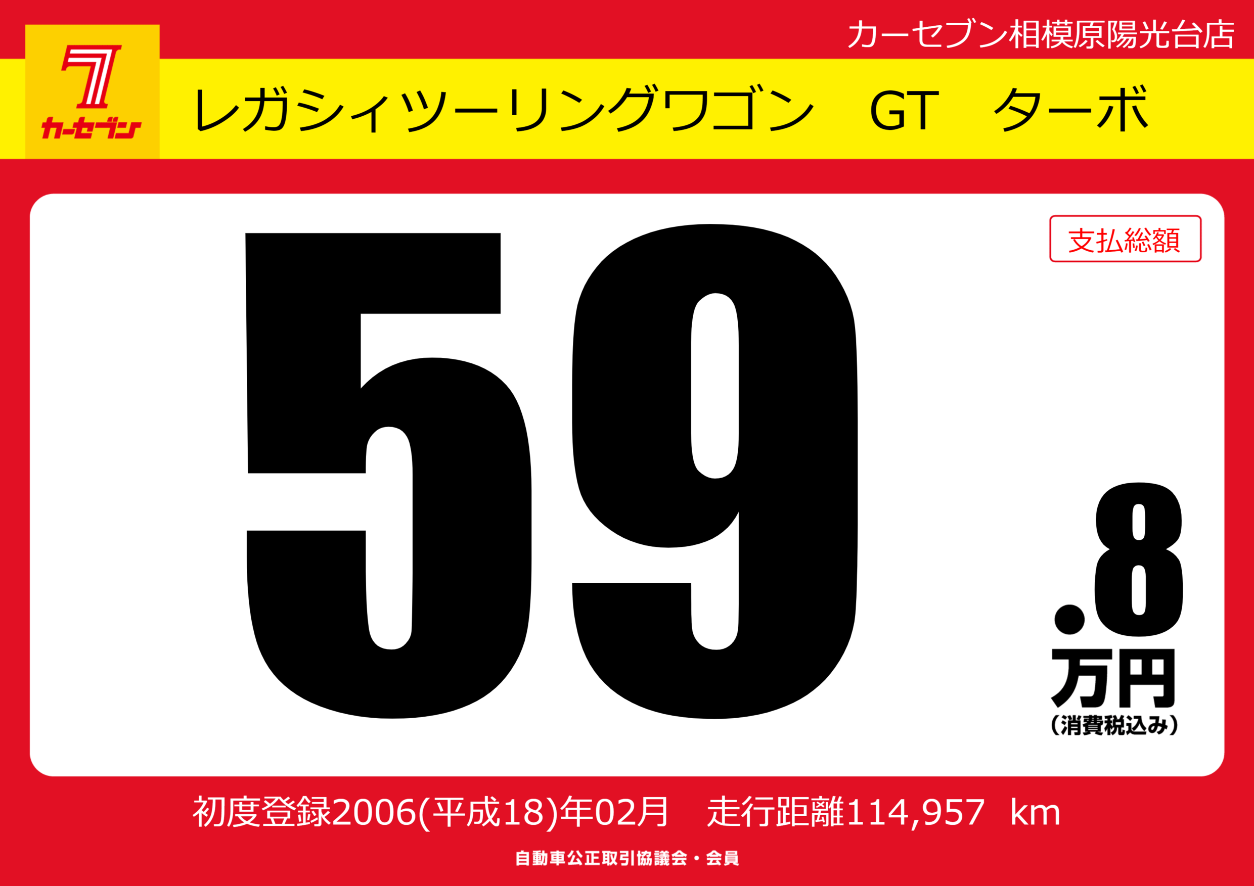 | 車名 | レガシィツーリングワゴン GT ターボ | グレード ミッション 排気量 |