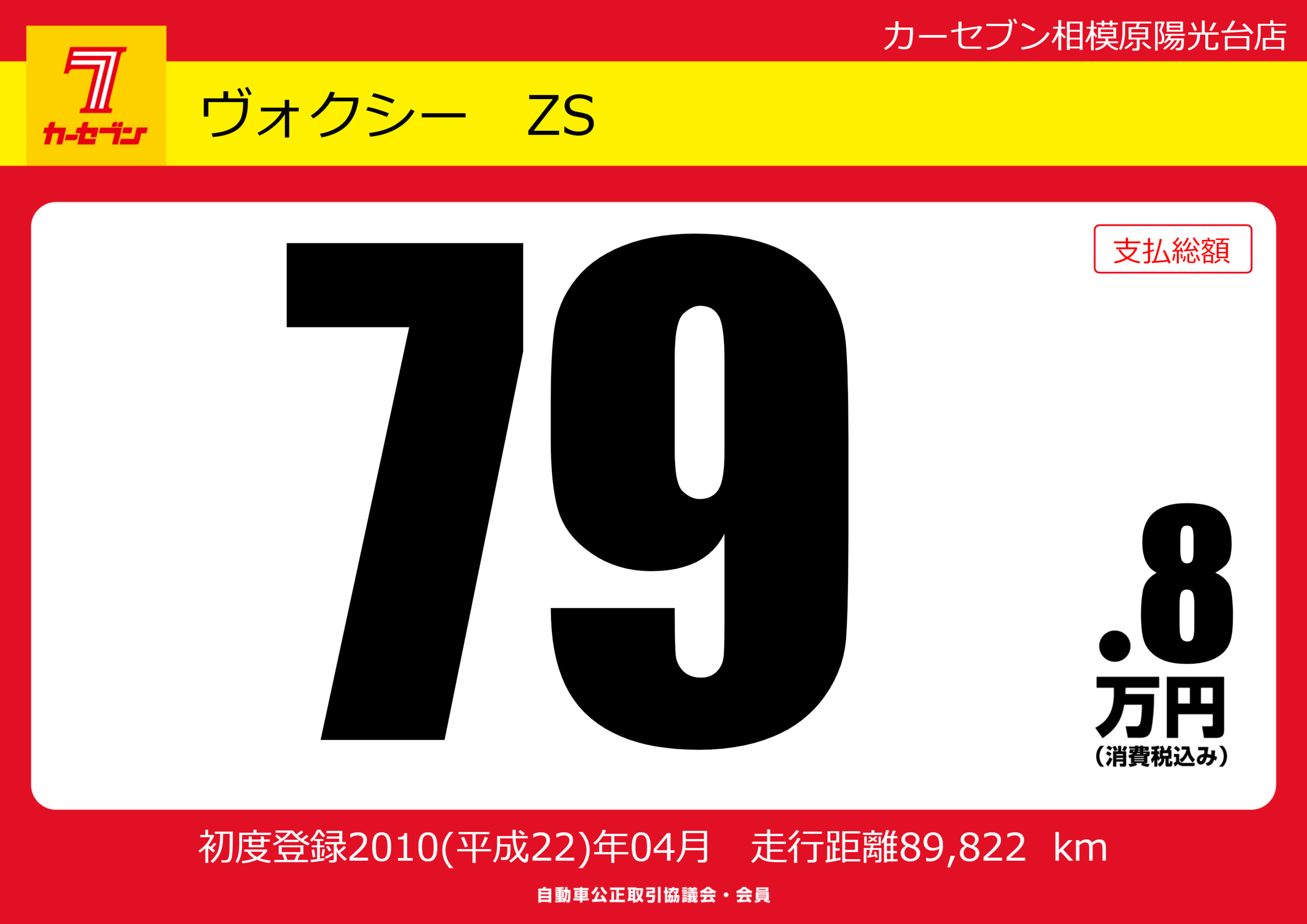 | 車名 | ヴォクシー ZS | グレード ミッション 排気量 |