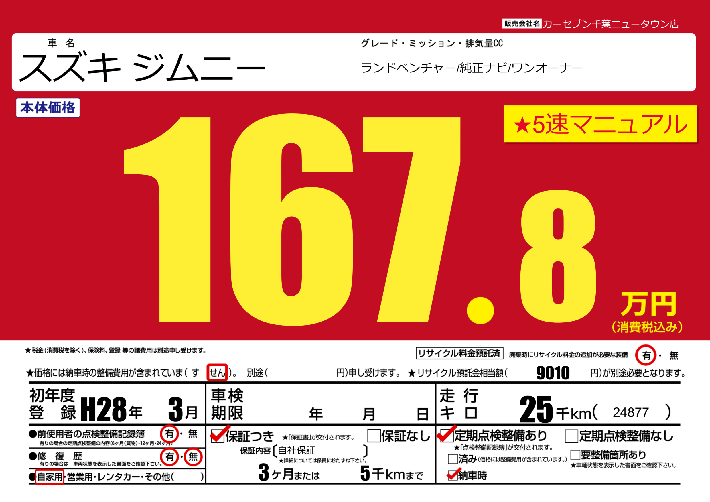 保証付き 保証内容(自社保証) 3ヶ月または5千km |