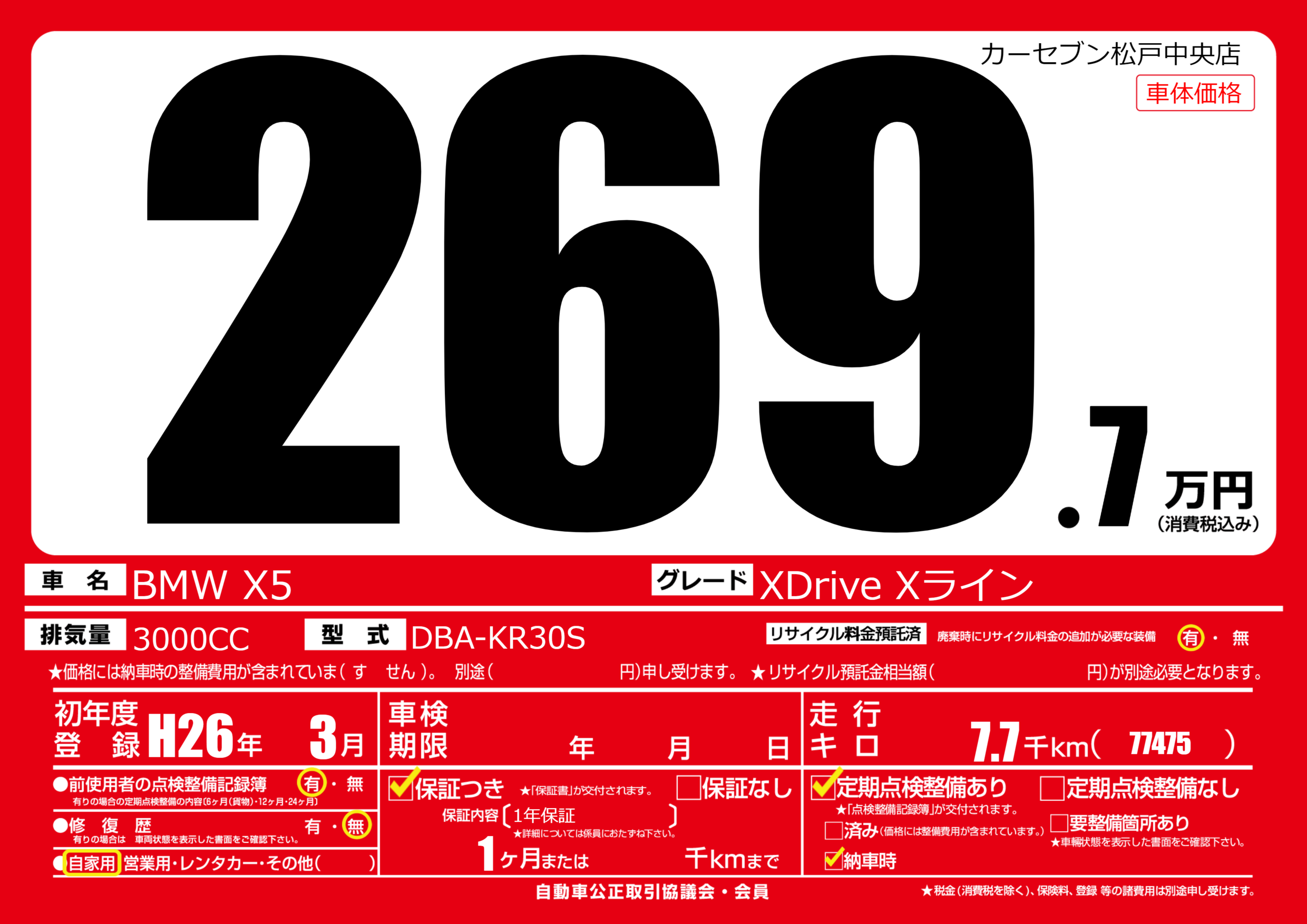 保証付き 保証内容(1年保証) 1ヶ月または()千kmまで |