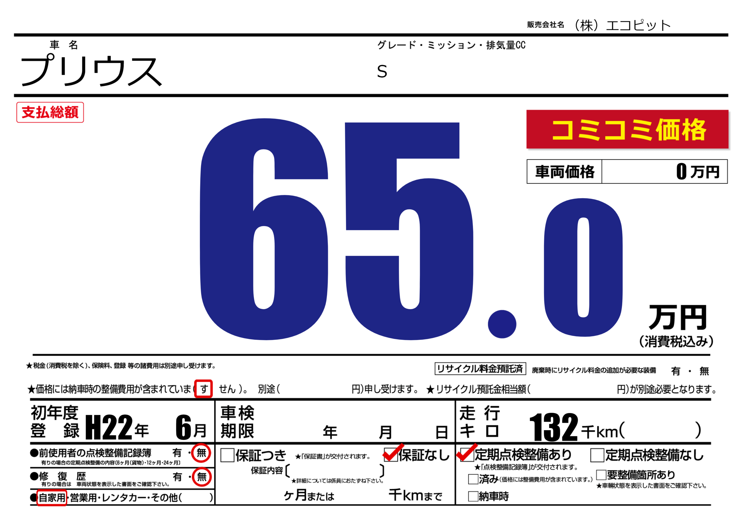 | 定期点検整備 | 定期点検整備あり | ||
