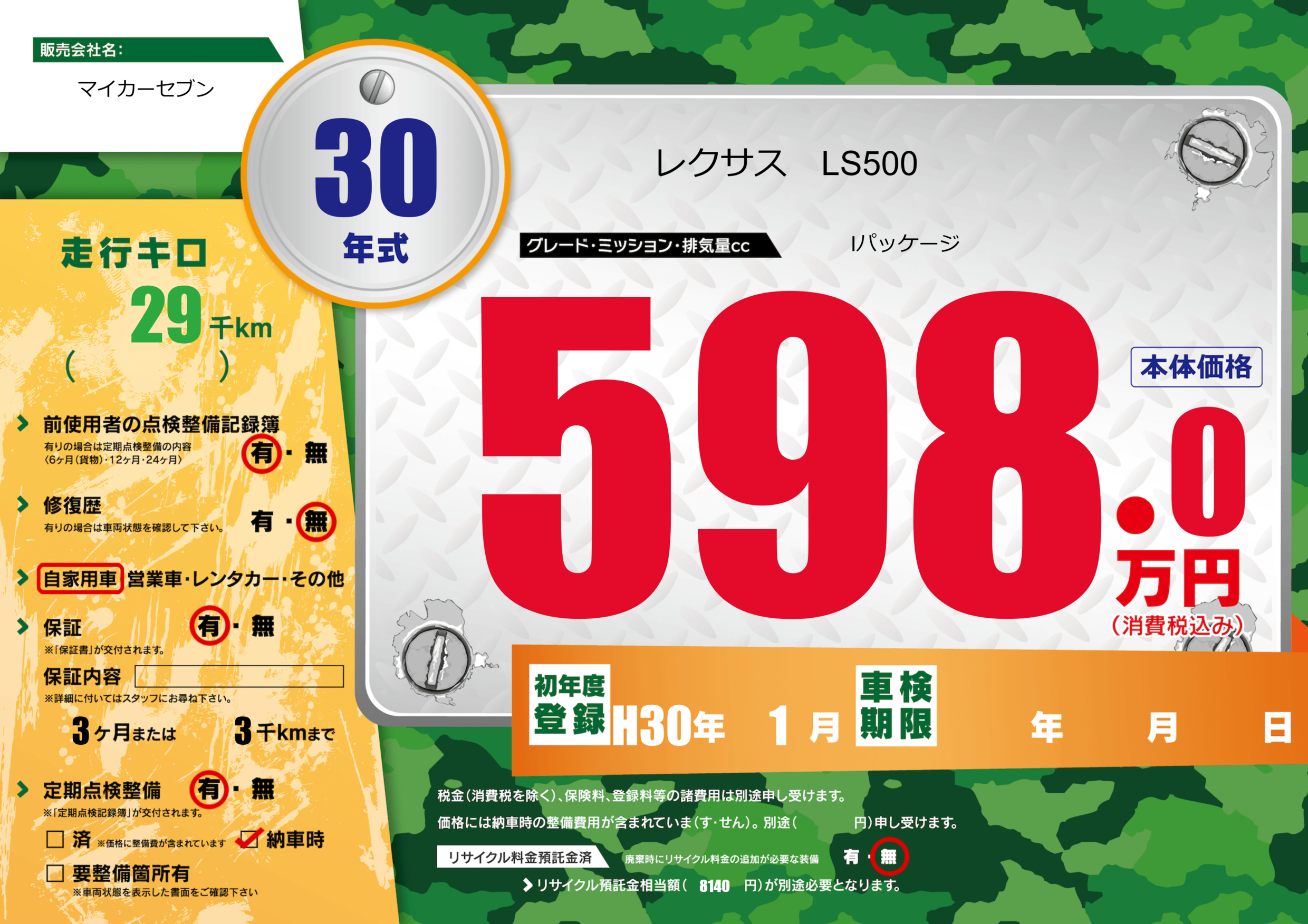 | 車検制限 | - 年 - 月 - 日 | ||
