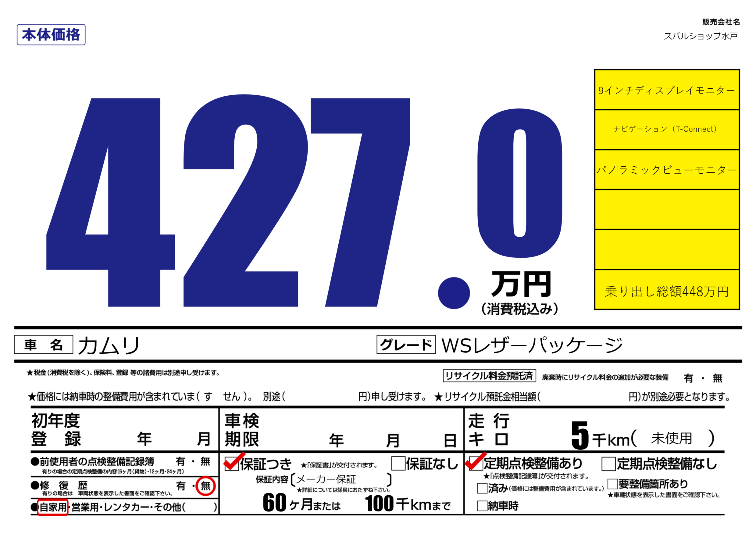 保証付き 保証内容(メーカー保証) 60ヶ月または100千km |