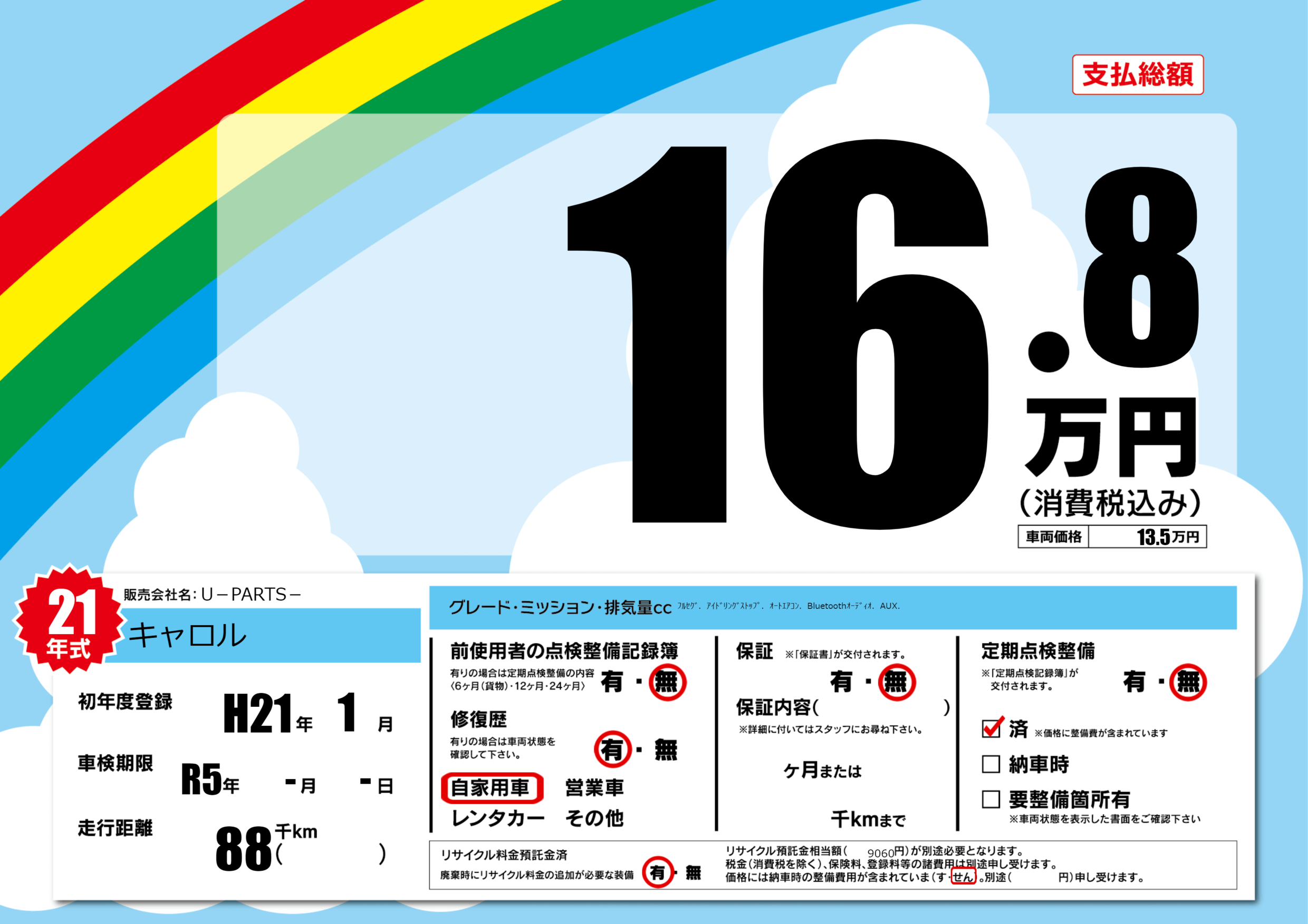 | 車名 | キャロル | グレード ミッション 排気量 |