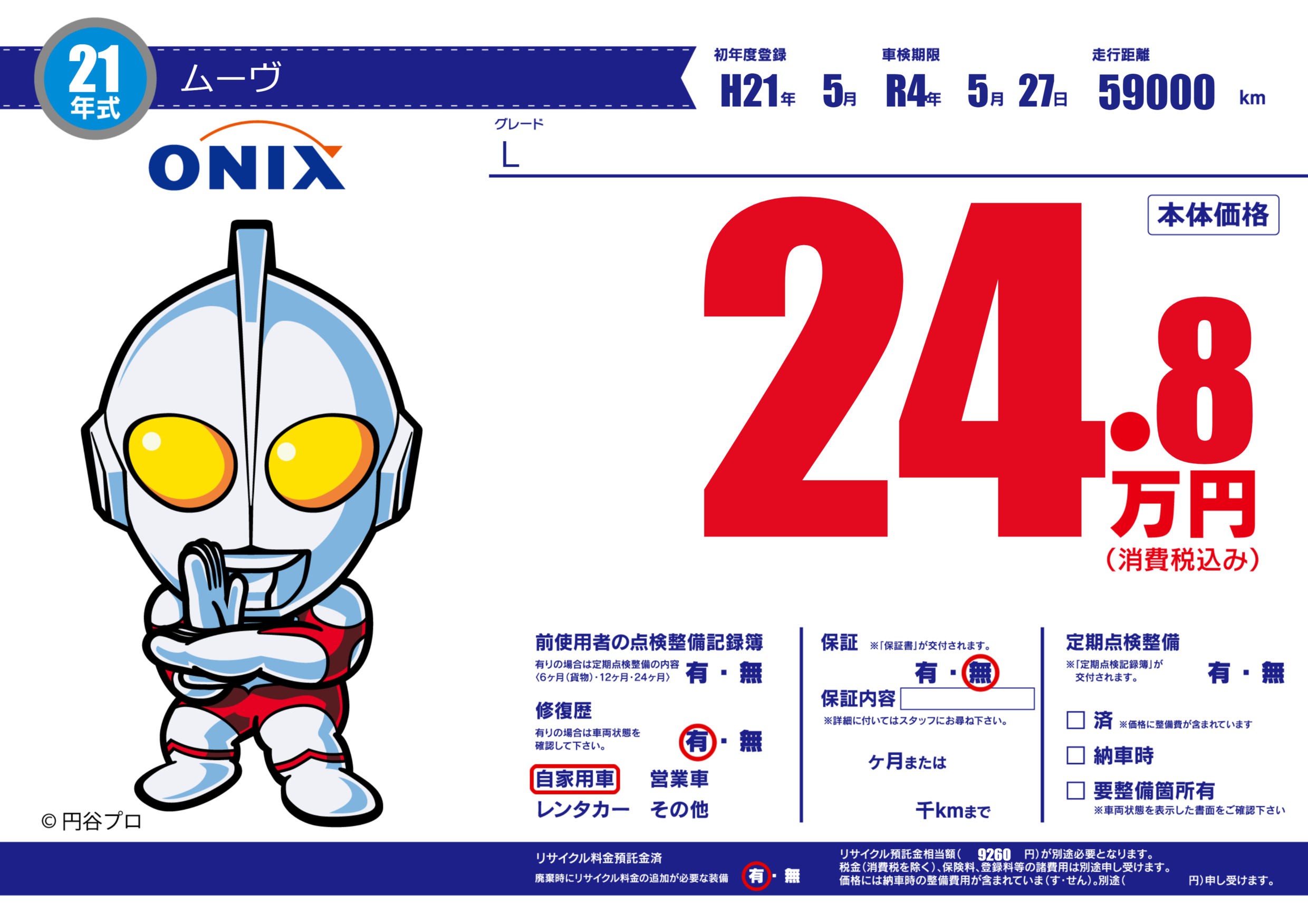 | 車名 | ムーヴ | グレード ミッション 排気量 |
