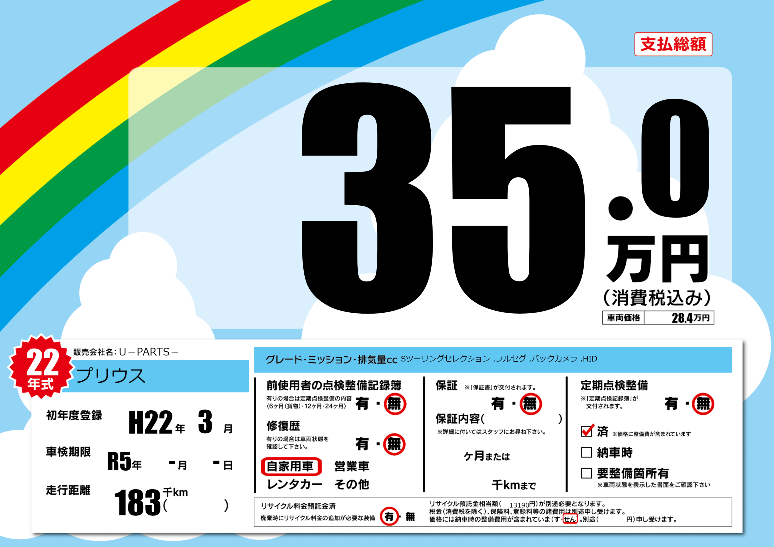 | 走行キロ | 18.3万km | 初年度登録 | H22年3月 |