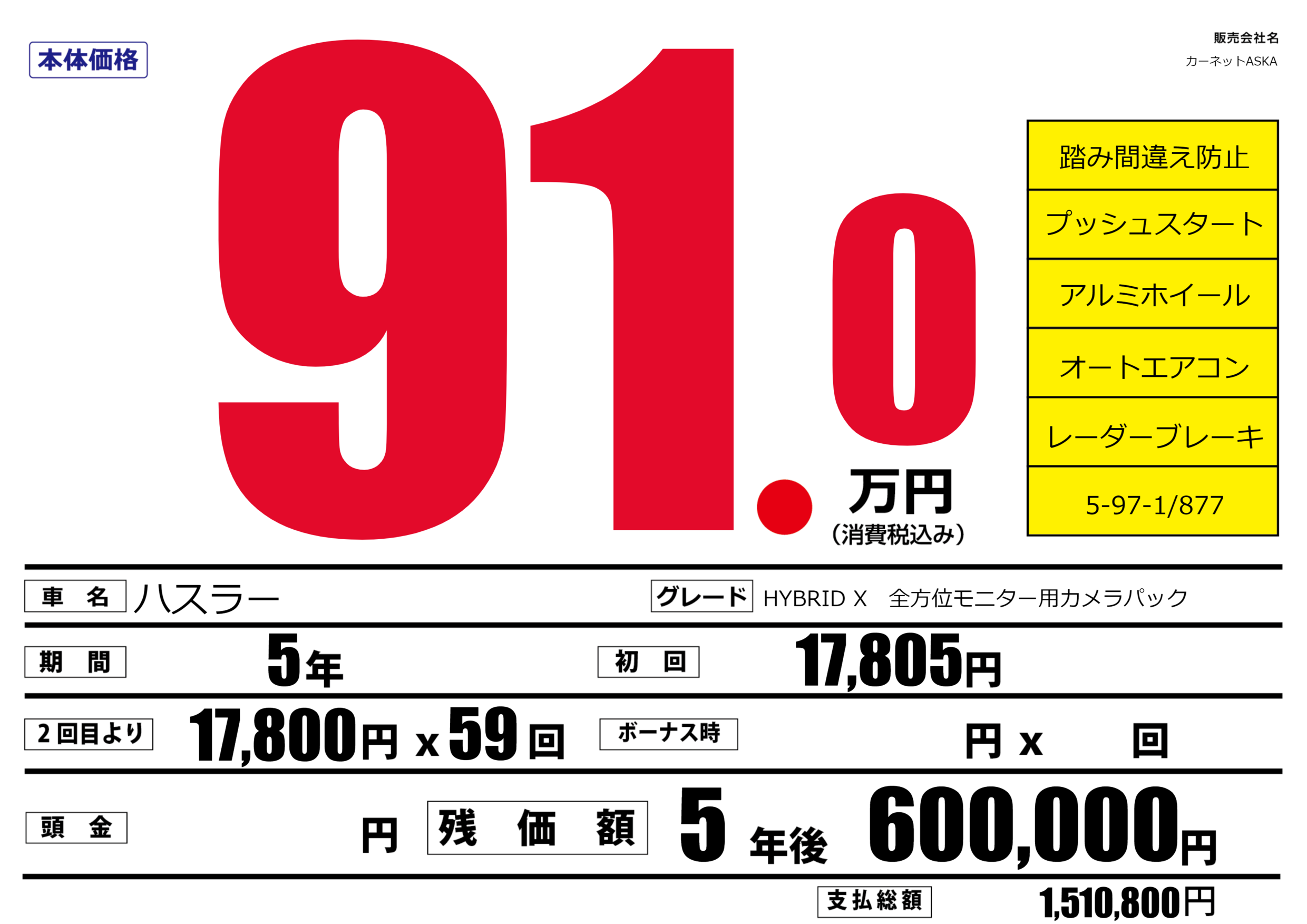| 車名 | ハスラー | グレード ミッション 排気量 |