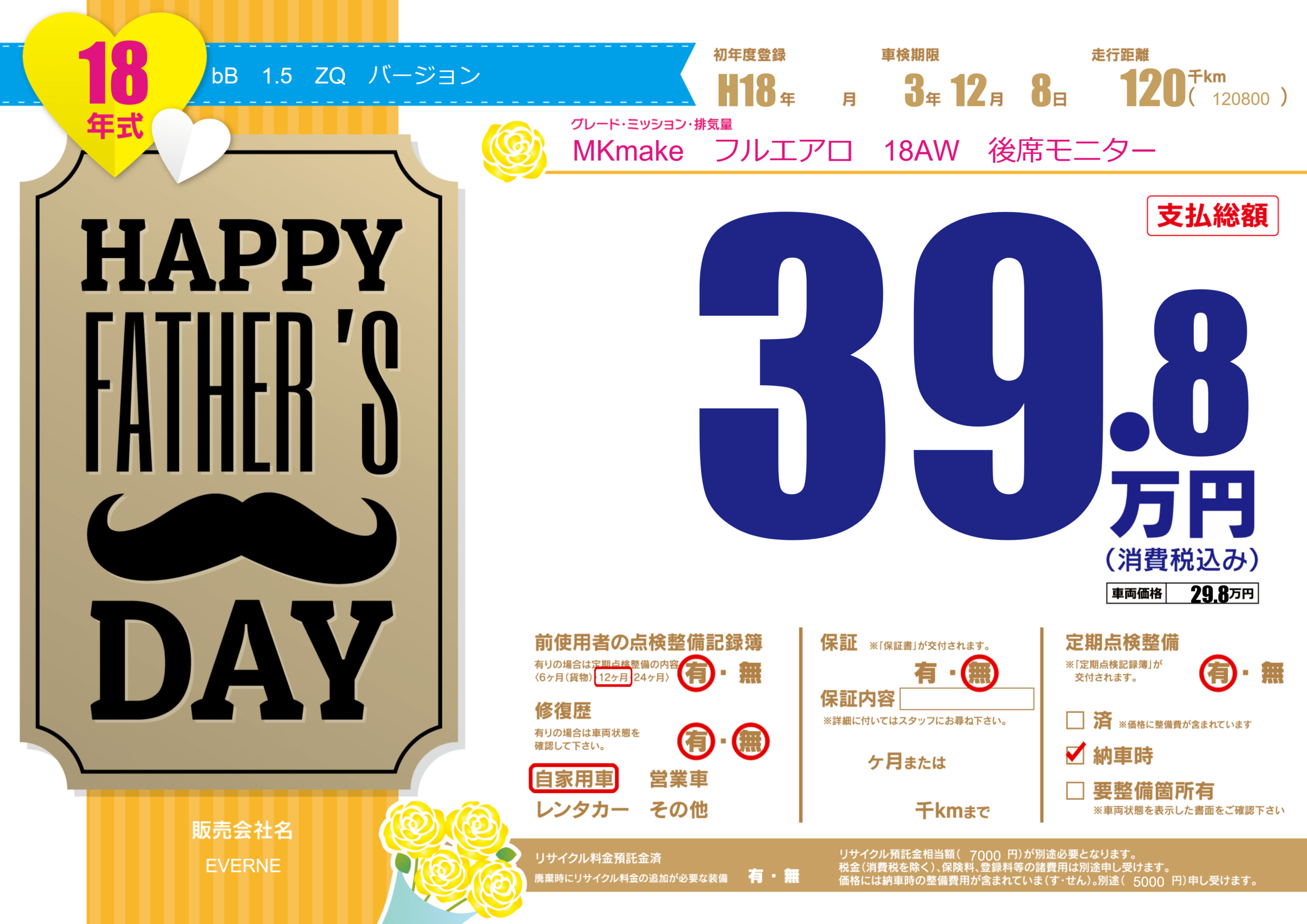 | 走行キロ | 12万km | 初年度登録 | H18年---月 |