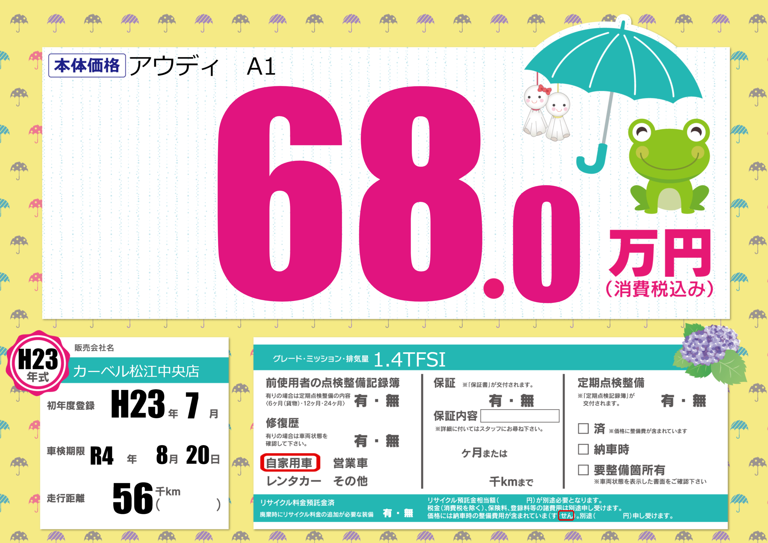 | 走行キロ | 5.6万km | 初年度登録 | H23年7月 |