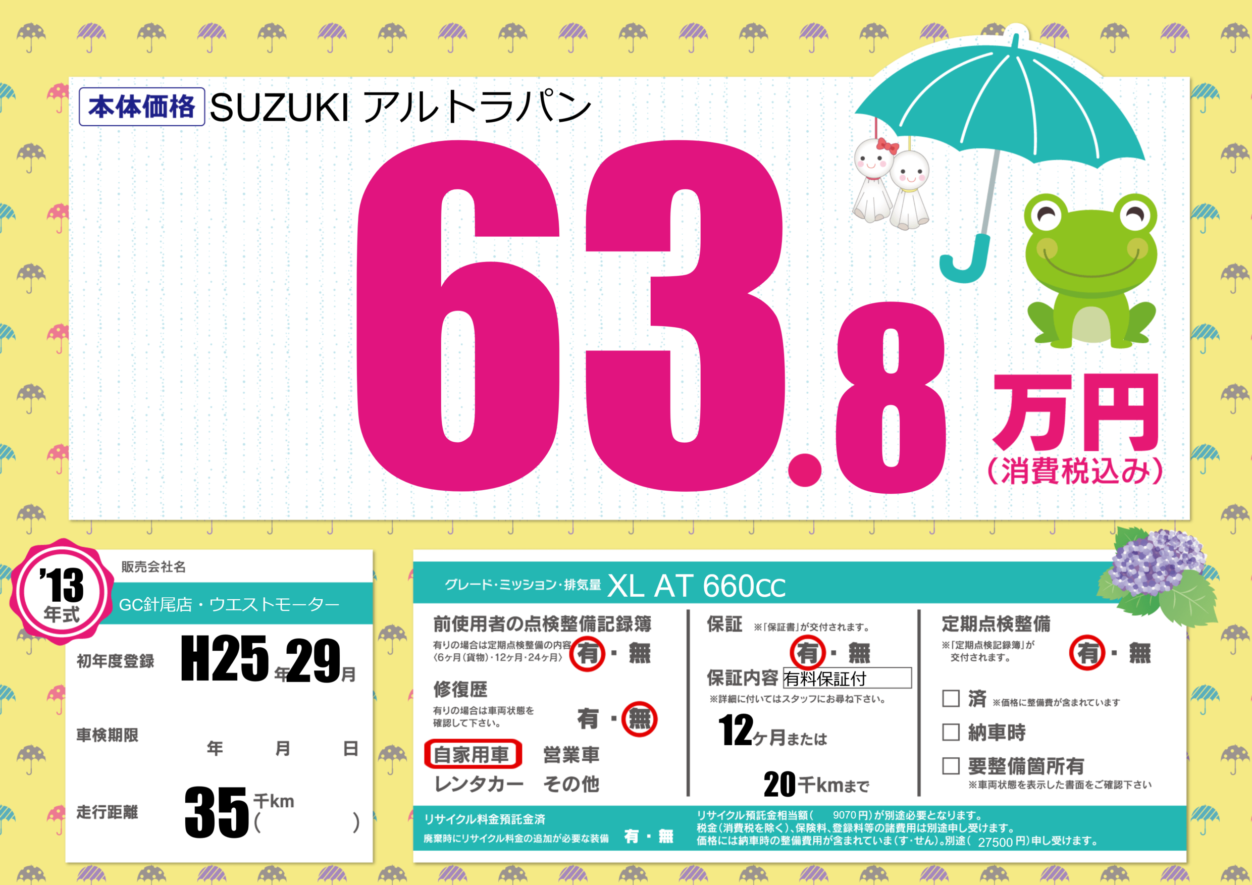| 走行キロ | 3.5万km | 初年度登録 | H25年29月 |