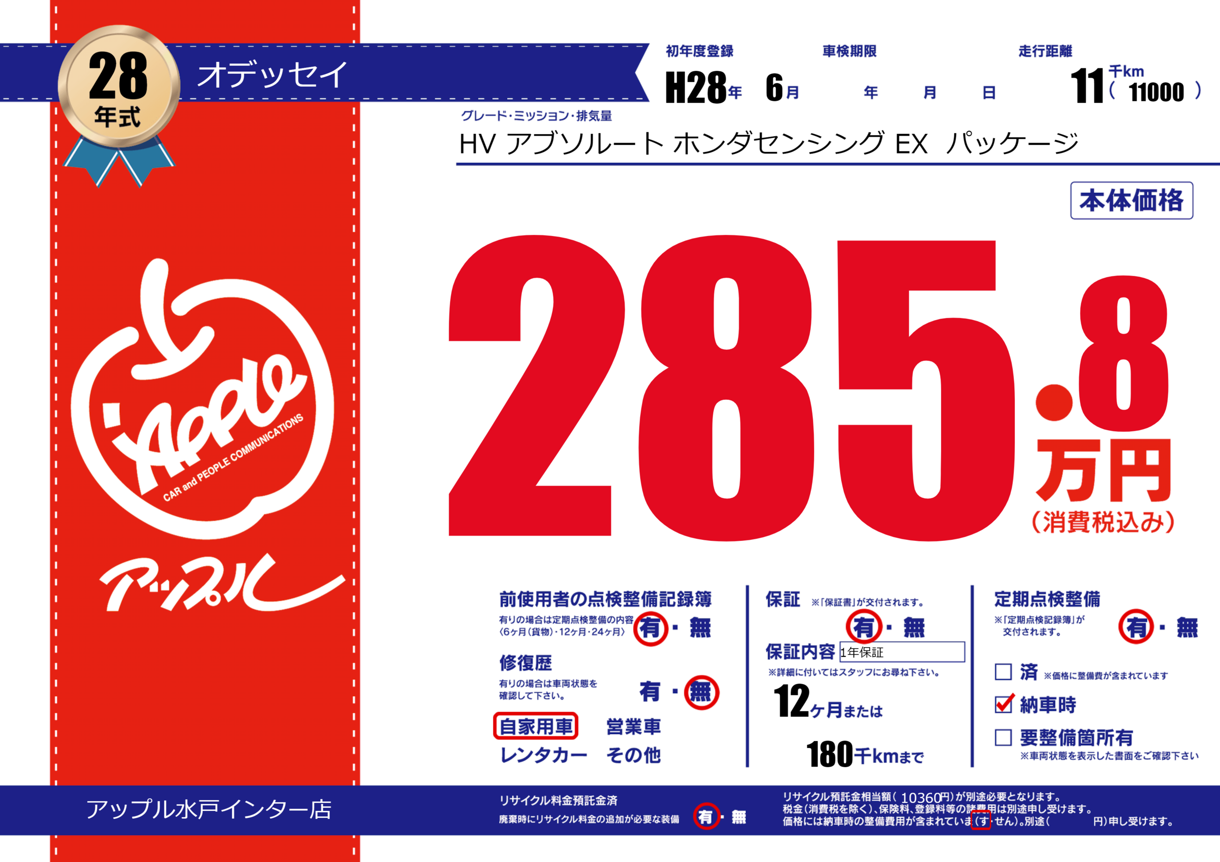 | 車名 | オデッセイ | グレード ミッション 排気量 |