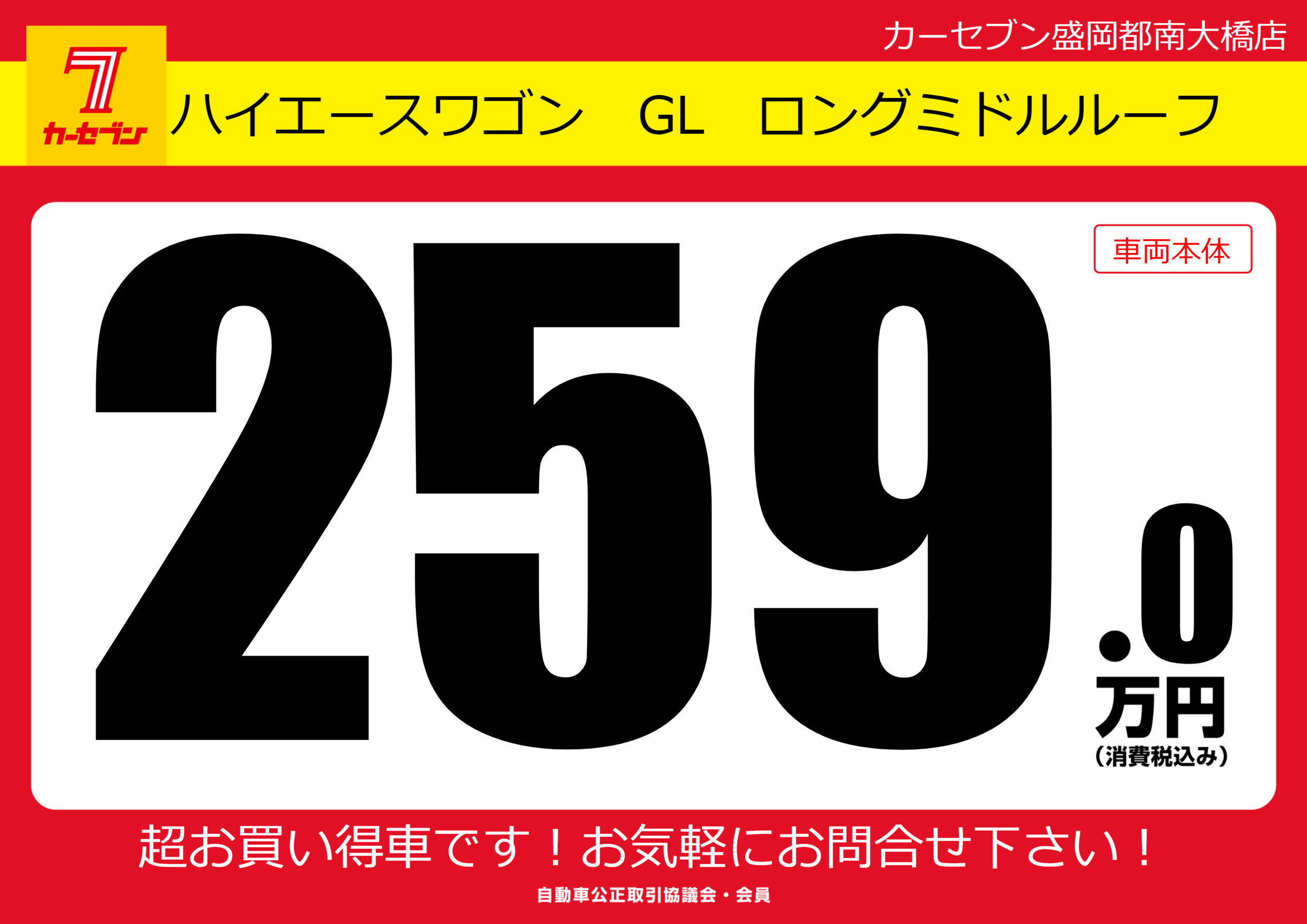 | 車名 | ハイエースワゴン GL ロングミドルルーフ | グレード ミッション 排気量 |