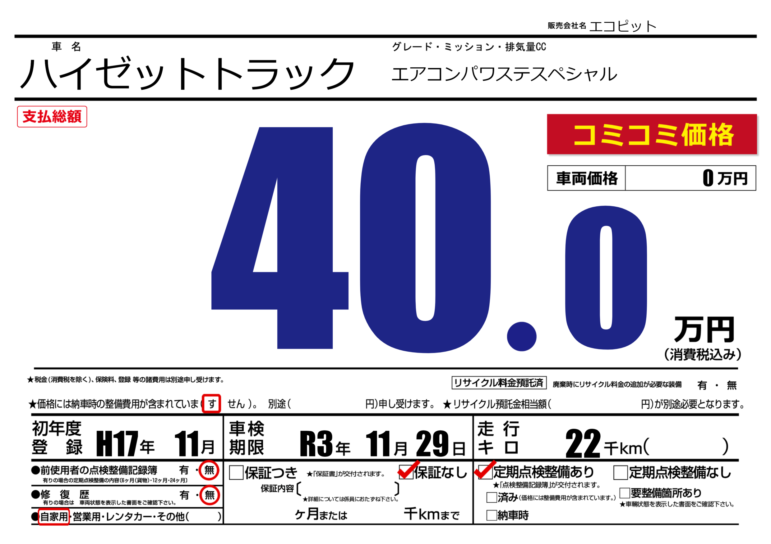 | 定期点検整備 | 定期点検整備あり | ||