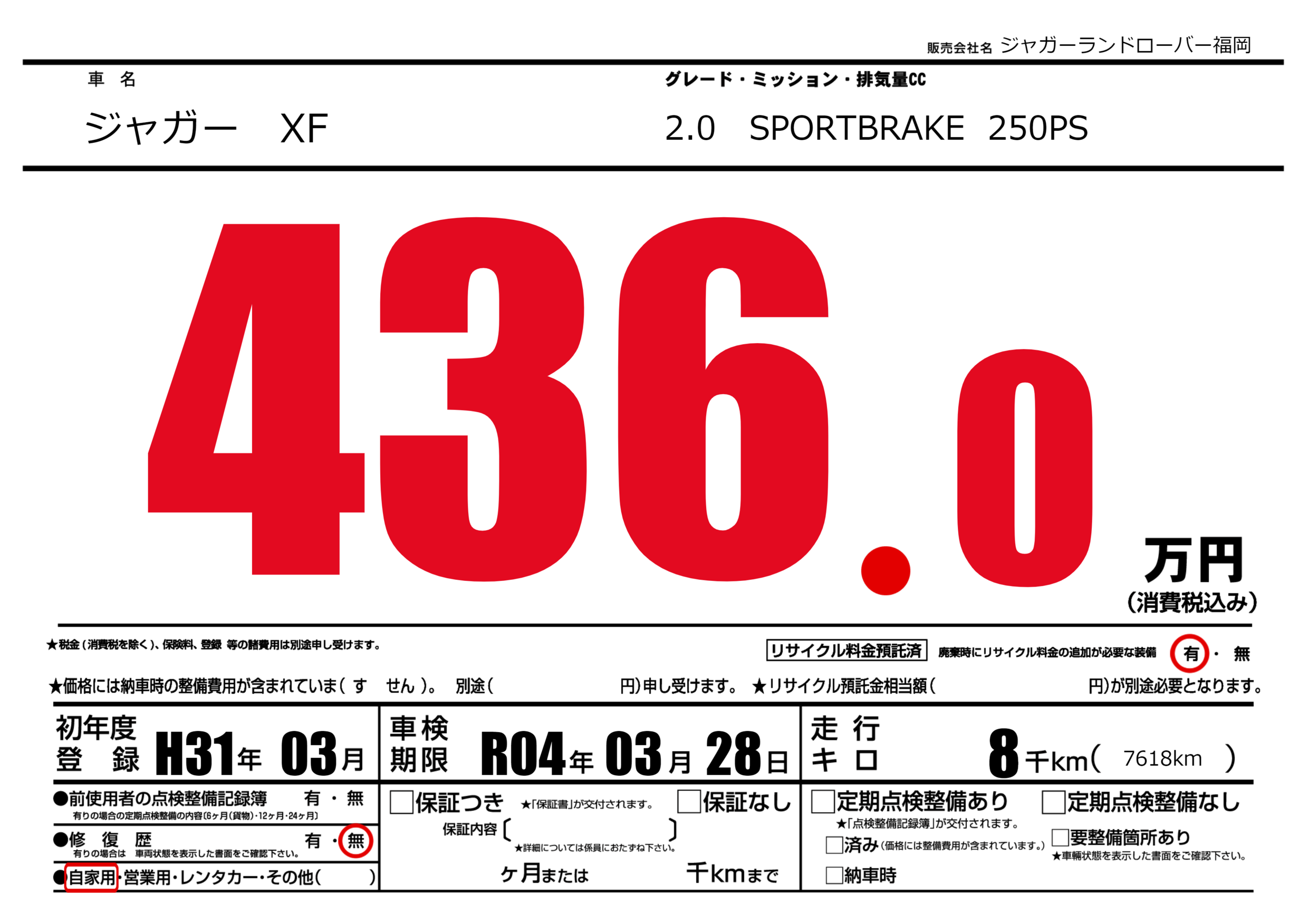 | 車名 | ジャガー XF | グレード ミッション 排気量 |