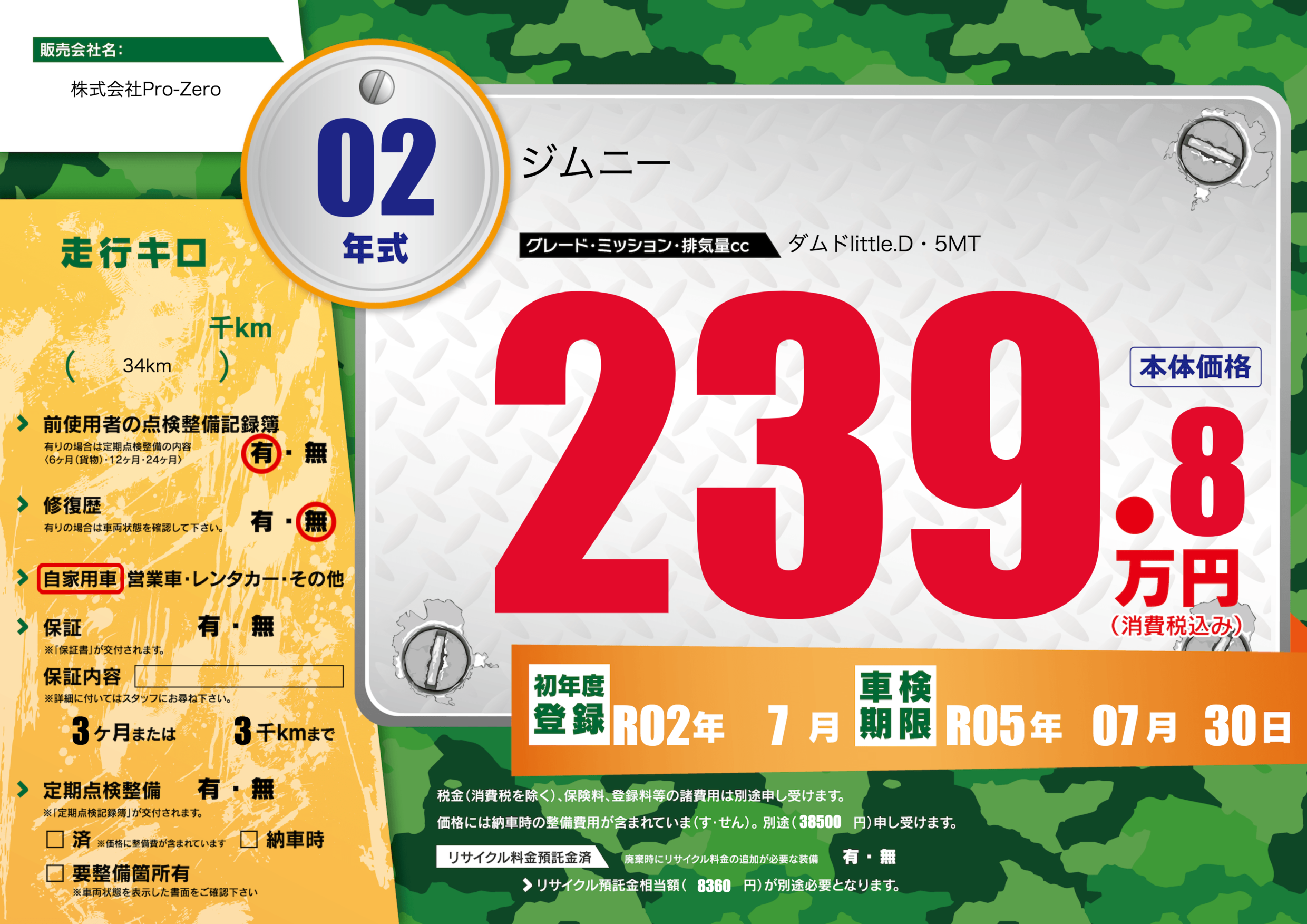 | 車検制限 | R05年 07月 30日 | ||